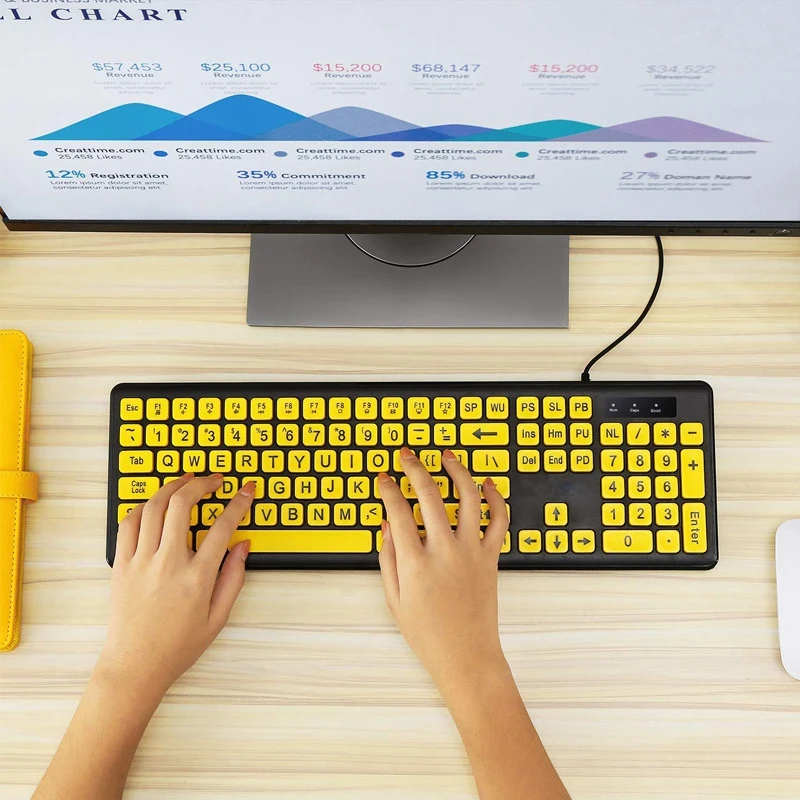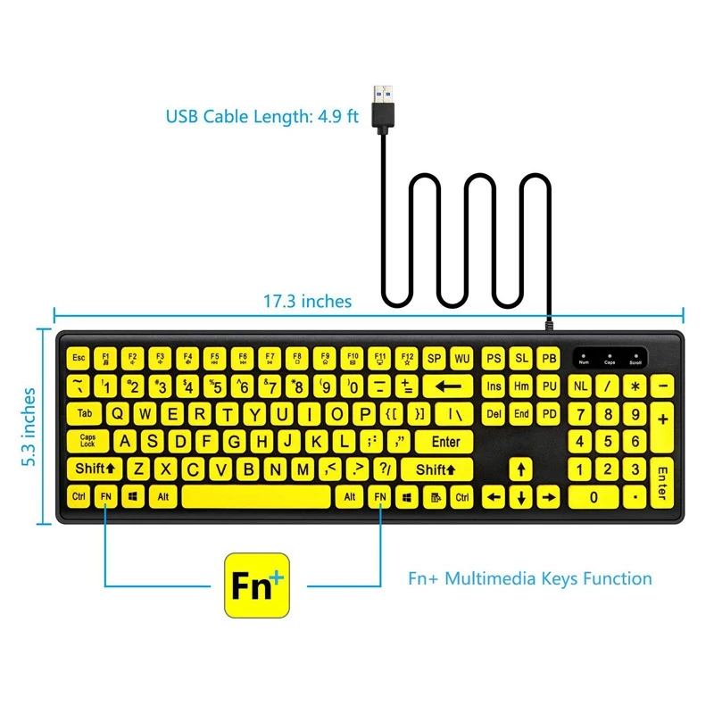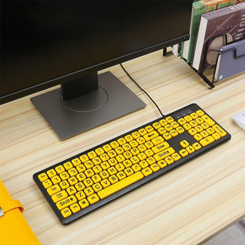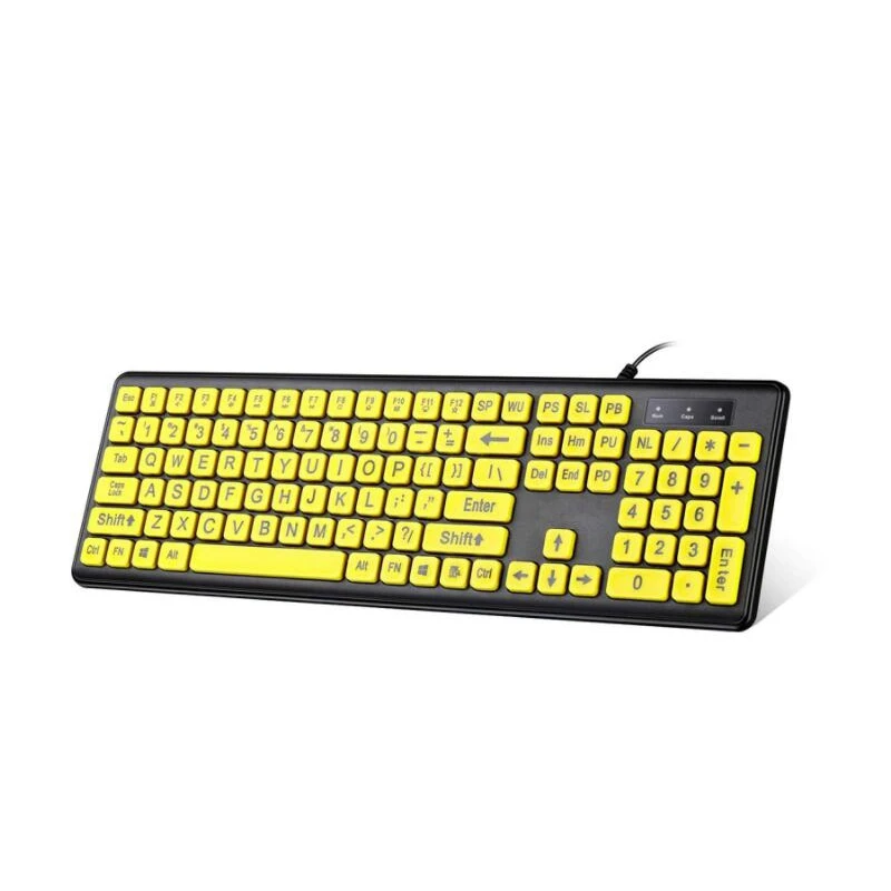 Проводная компьютерная клавиатура с желтыми клавишами, черная буква, большая, для пожилых людей, USB ПК, компьютерная игровая клавиатура для людей с низким зрением