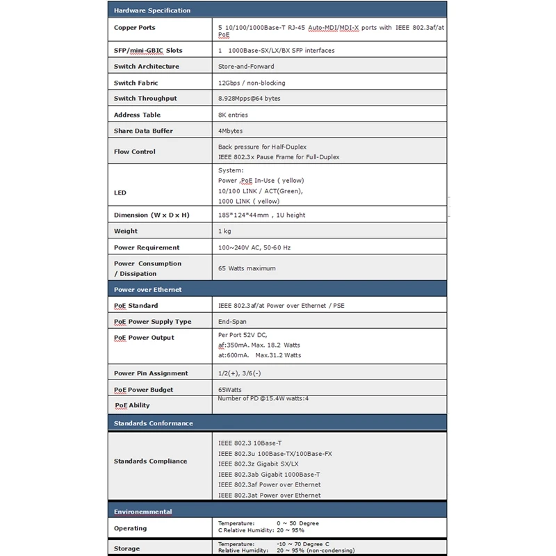 IEEE 802.3af/at, совместим со всеми IEEE 802.3af/at, безопасный: устройства с низкой мощностью получают только необходимую мощность, безопасную и надежную мощность для точек доступа WLAN