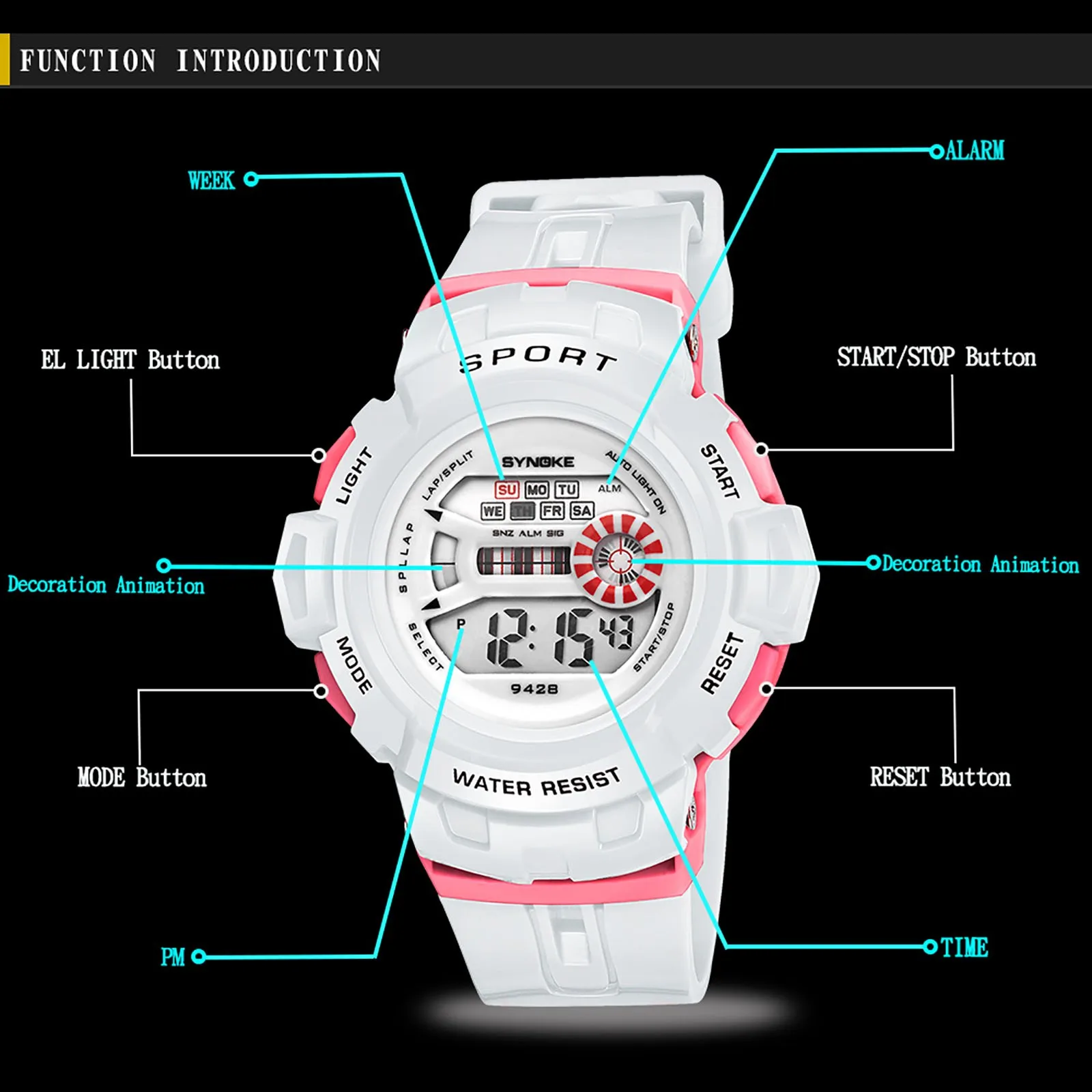 Специальный ABS пластиковый корпус, высококачественный p пластиковый ремешок, акриловая матовая поверхность, Нижняя крышка из нержавеющей стали, застежка из нержавеющей стали.Дизайн больше цветов для спорта на открытом воздухе.