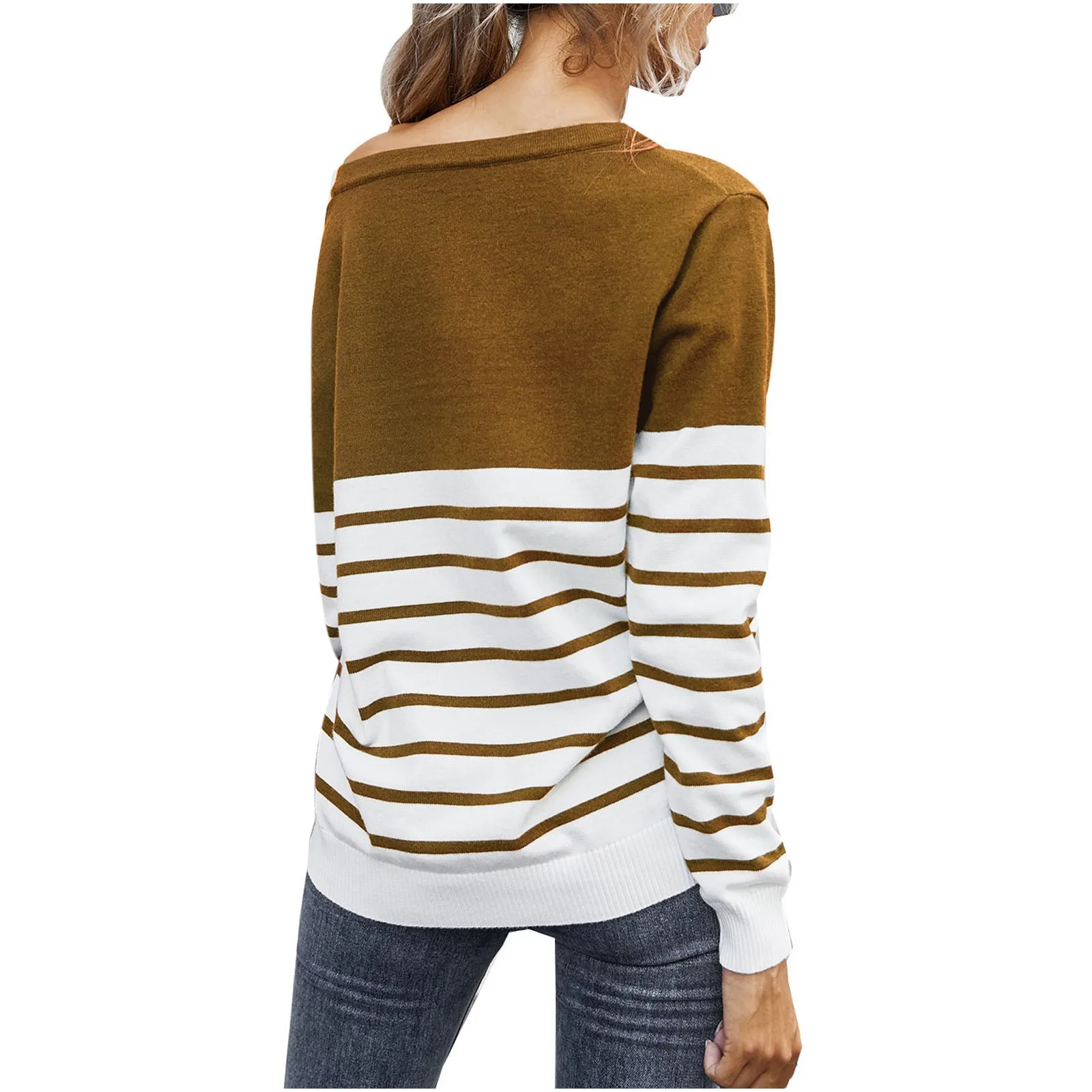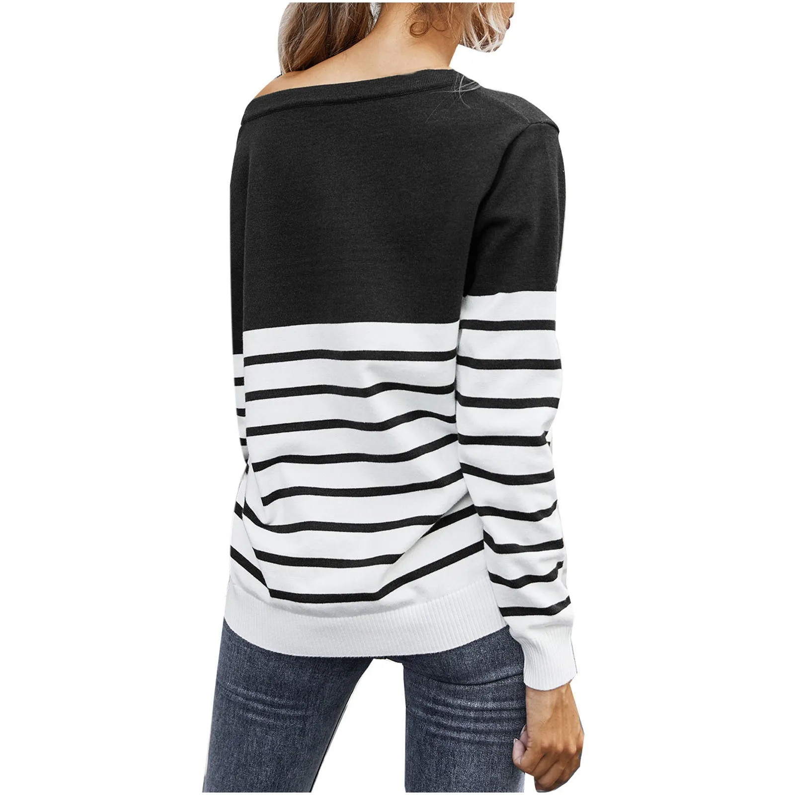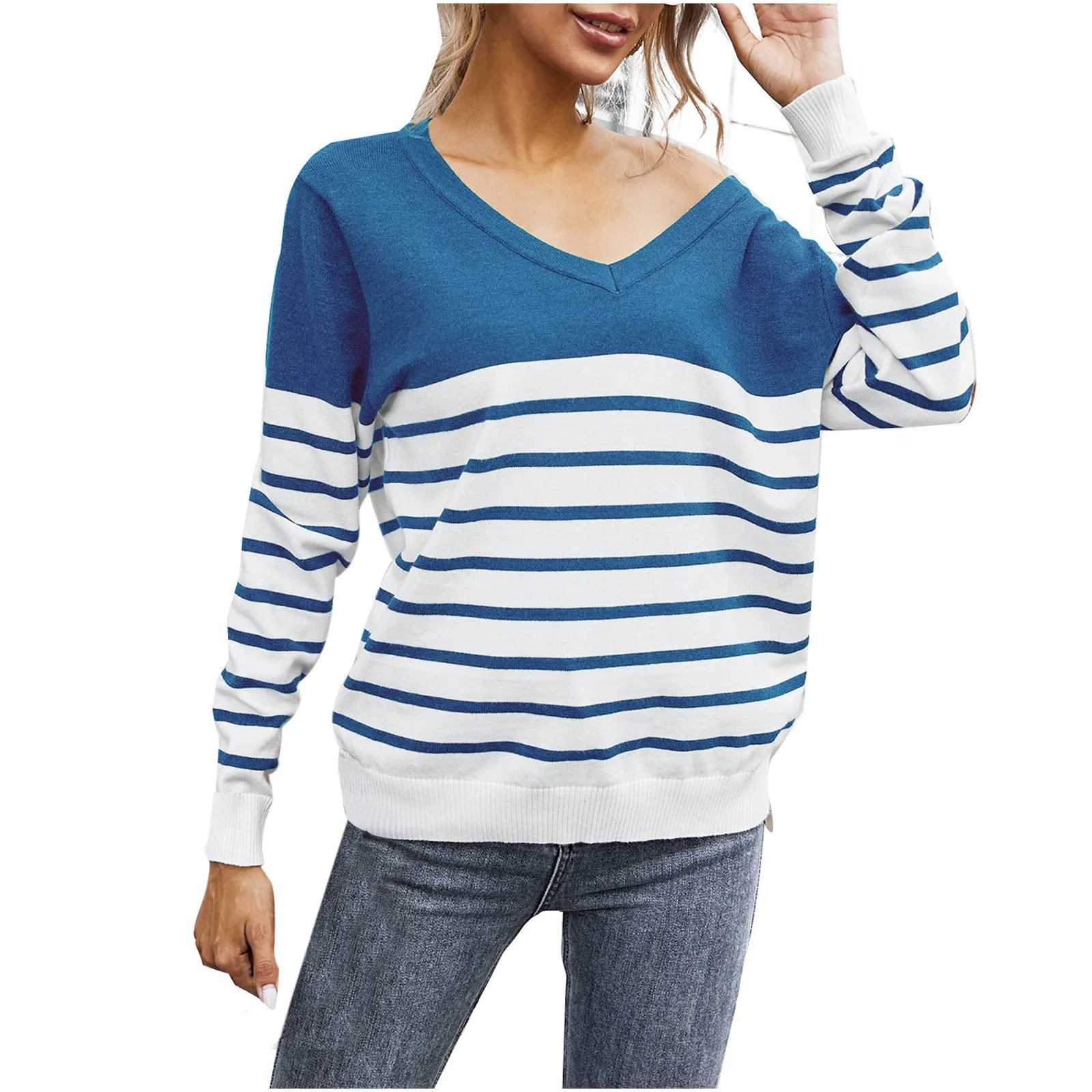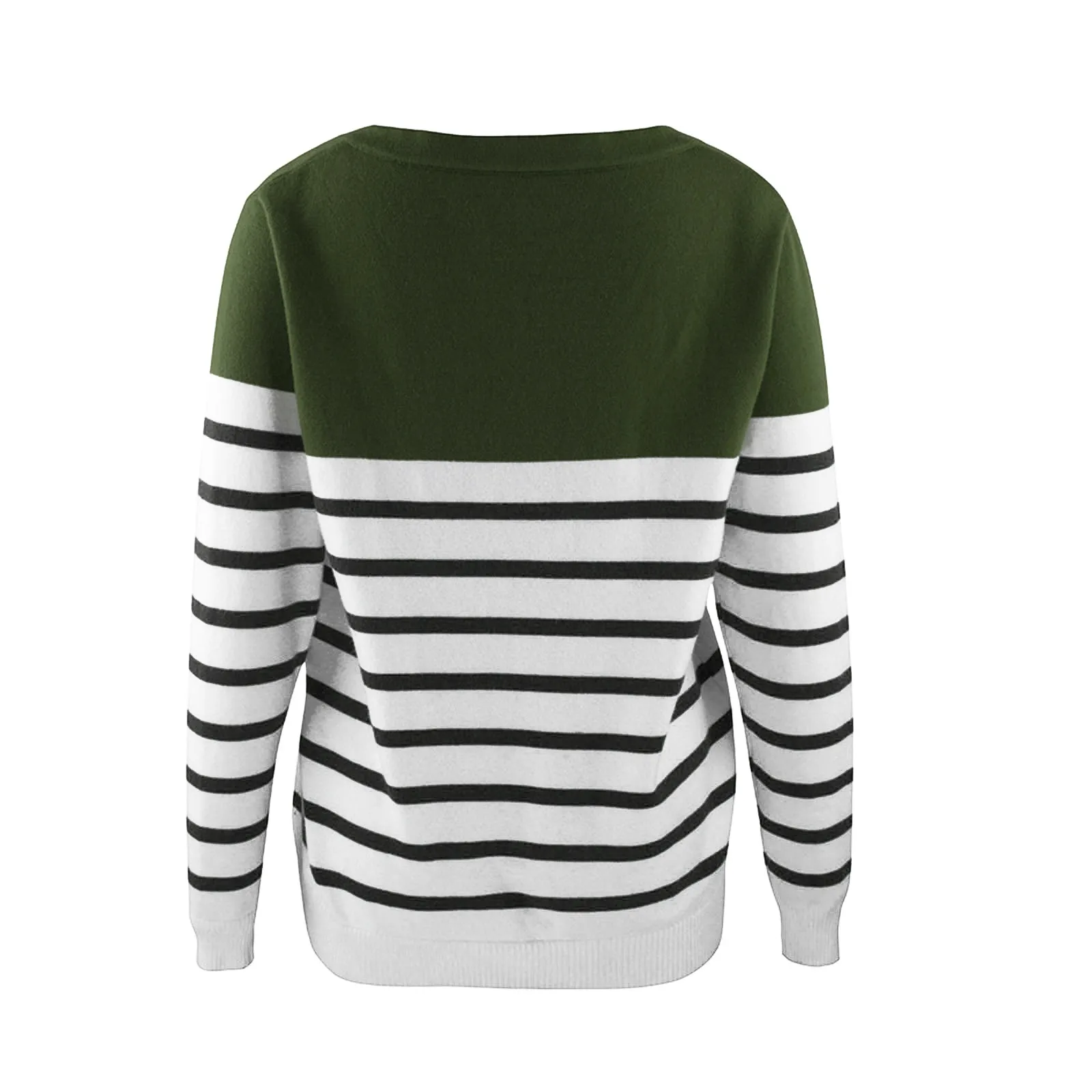 Women’s Casual Long Sleeve Sweater Stripe Print Color Block Loose Pullover Tops