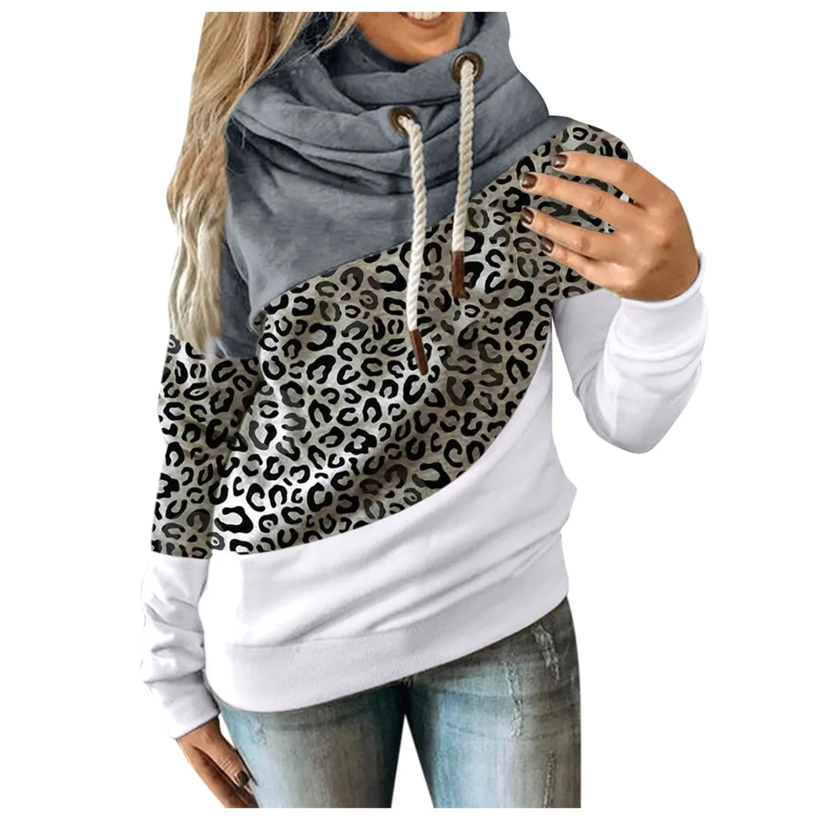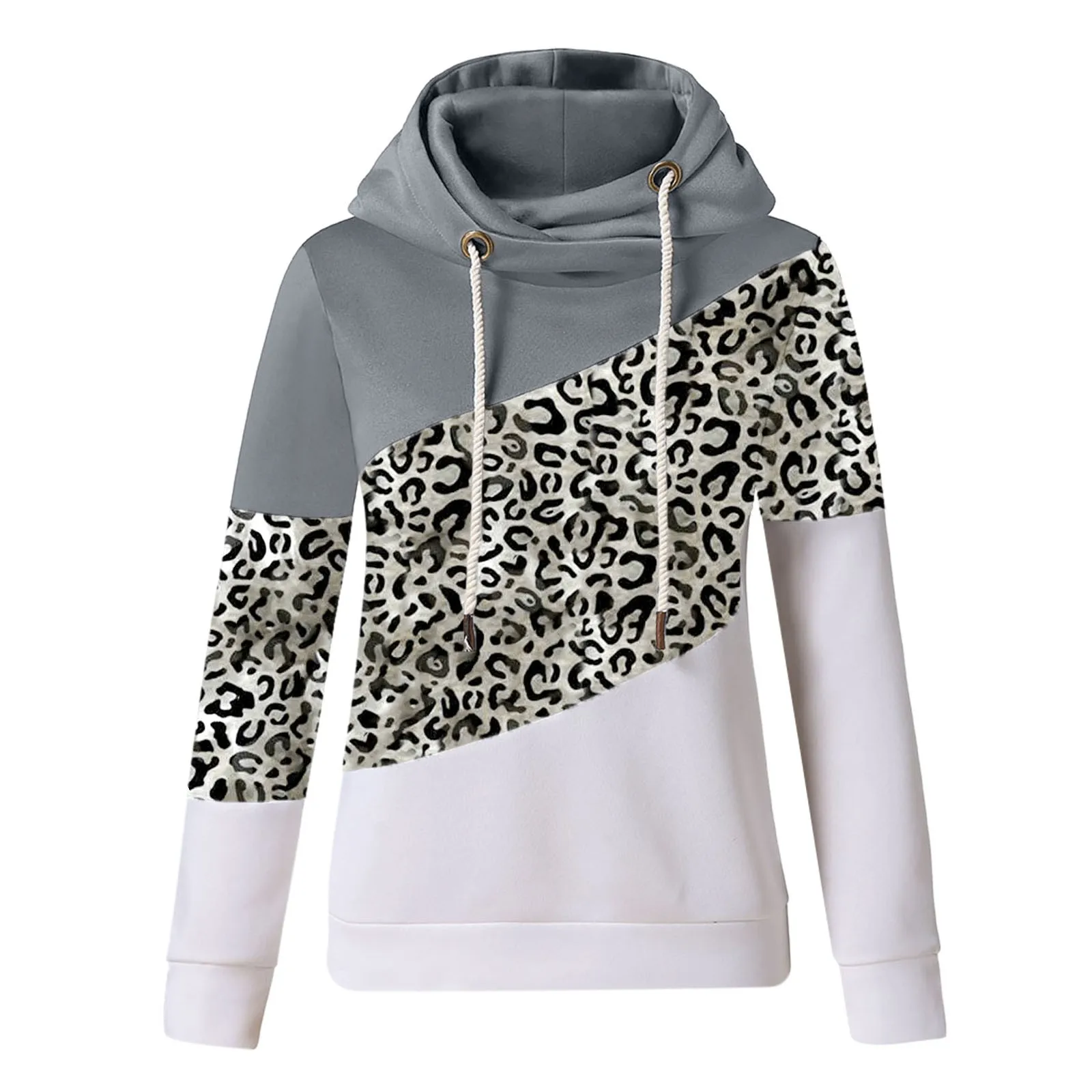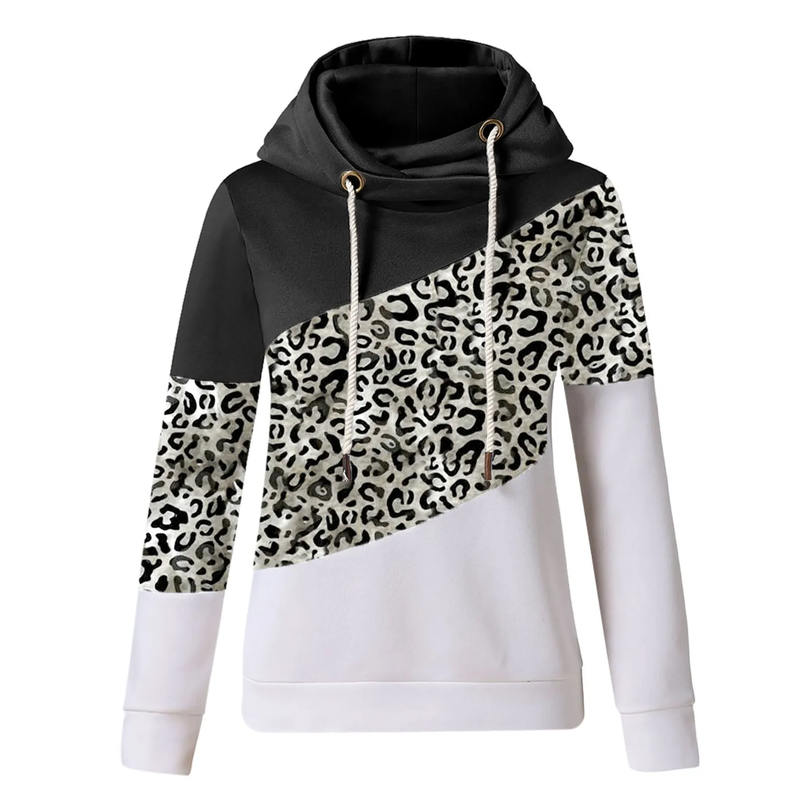 Женская Повседневная леопардовая контрастная Толстовка с длинным рукавом