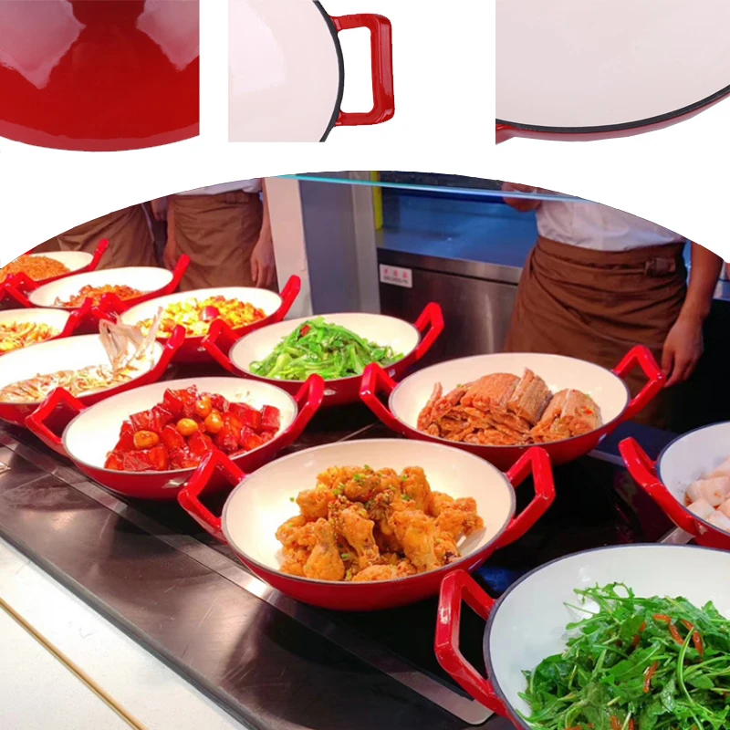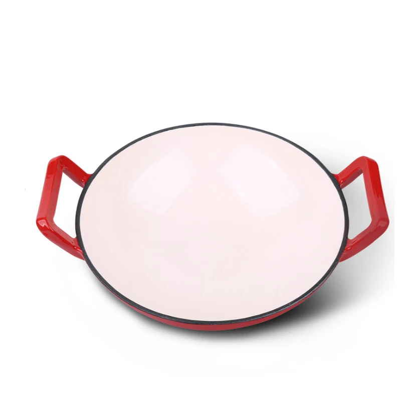 Изделие: чугунная эмалированная сковорода Диаметр: 30 см Материал: чугун Вес около 3,5 кг Применяется для 1-4 человек. Преимущества: Блокировка теплоизоляции, равномерный вкус, энергосбережение Не легко ржаветь, коррозионная стойкость, высокая термостойкость Применимый газ, индукционная плита, электрическая керамическая плита, галогенная плита, электрическая плита, духовка