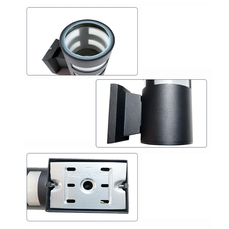 Спецификация: Тип: настенный светильник Материал: алюминий Количество: 1 шт. Цвет изделия: черный Мощность: 6 Вт для одной стороны Тип Soclet: E27 (тип винта) Угол луча: 360 градусов Водонепроницаемость: IP65 Вход: 85-235 В переменного тока Сертификация: CE/RoHS Посылка: 1 * настенный светильник 1 * набор аксессуаров