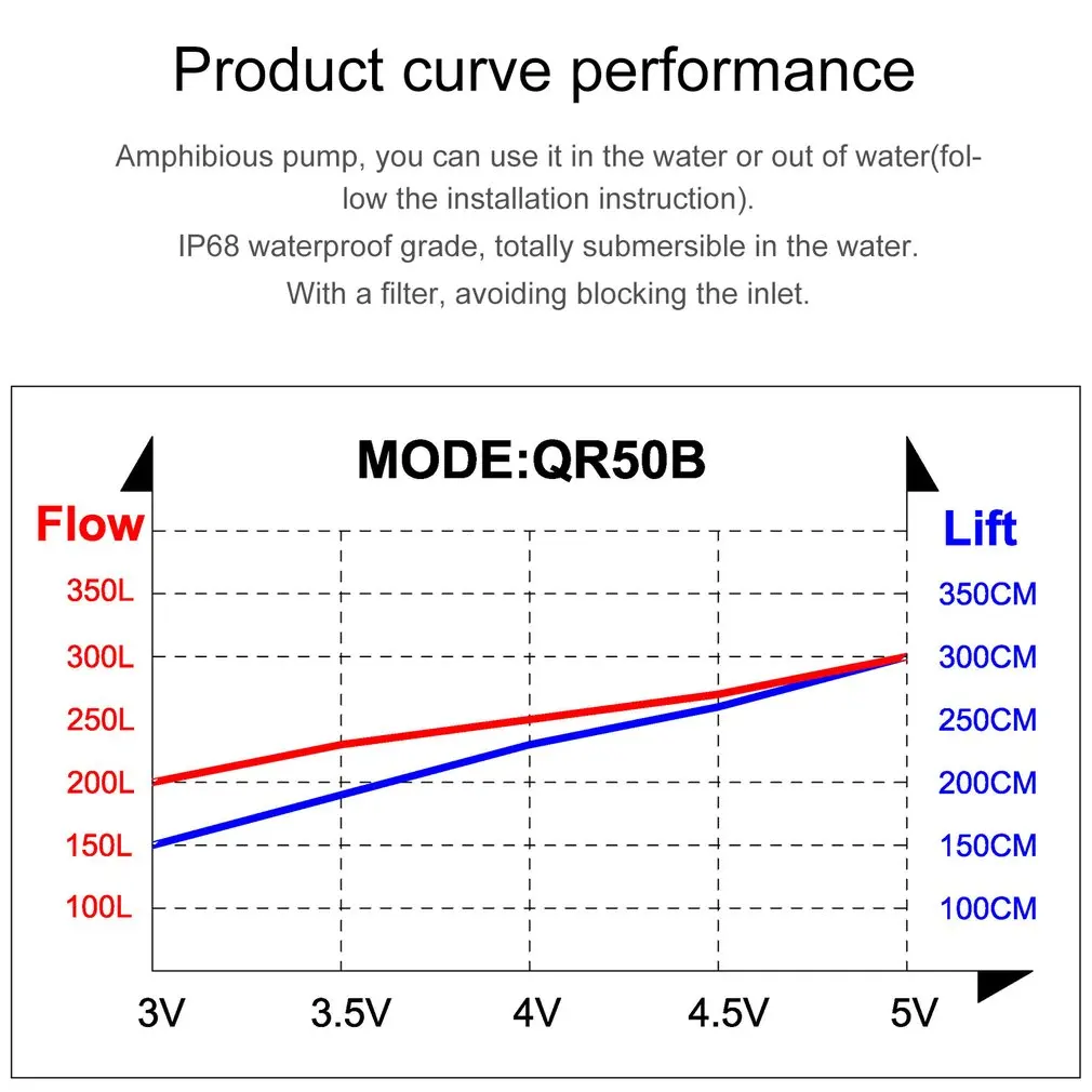 Тип 1: Посылка входит: Бесщеточный насос постоянного тока 1*12 В постоянного тока Тип 2: Размер: 54*37*42 мм Номинальное напряжение: 12 В постоянного тока Номинальный ток: 375 мА Потребляемая мощность: 4,2 Вт Расход: 240 л/ч Материал: пластик Диаметр входного отверстия: 8 мм Диаметр выхода: 8 мм Срок службы: 20000 часов Шум: ≤ 40 дБ Водонепроницаемость: IP68 Термостойкость: 0-100 ℃ Длина кабеля: 45 см Посылка входит: 1 * мини водяной насос 1 * U-образный аксессуар Тип 3: Модель: QR50B Материал насоса: PC + ABS Длина кабеля: прибл. 150 см/4,92 дюйма Тип 4: Тип 5: Размер: 54 (Д) х37 (Ш) х42 (В) мм