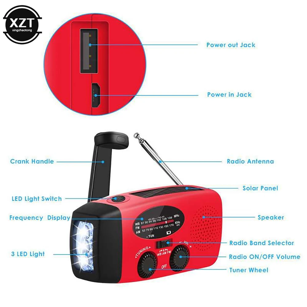 Особенность: 1. Это аварийное радио с автономным питанием, от которого вы и ваша семья можете положиться в любое время и в любом месте, в любую погоду 2. Многофункциональность: погодное радио, 3 светодиодный ных фонарика, внешний аккумулятор 3. Предлагает выбор вариантов самозарядки, солнечной и внешней перезарядки 4,1 минут ручного запуска поддерживает более 5 минут воспроизведения радио, более 30 минут непрерывного фонарь, 5 минут разговора с мобильного телефона 5. Очень компактный, легкий и удобный для переноски, хороший набор для выживания, когда мобильный телефон выключен или циклон 6. Водонепроницаемый Ipx3 Свойства изделия: Тип: AM / FM Стиль: портативный Функция: фонарик AM: от 525 кГц до 1710 кГц FM: от 88 МГц до 108 МГц Питание от аккумулятора: 3xaaa/350 мАч/3,6 в Ni-MH Диапазон погоды: от 162,40 до 162,55 МГц Фонарик: 3-светодиодный фонарик Цвет: красный, черный, камуфляжный (синий в комплект не входит) Материал: АБС Размер: 128 мм x 60 мм x 40 мм Срок Светодиодный Дов: 100000 часов Посылка 1 х ручное радио 1 x USB-кабель для зарядки 1 х Руководство пользователя