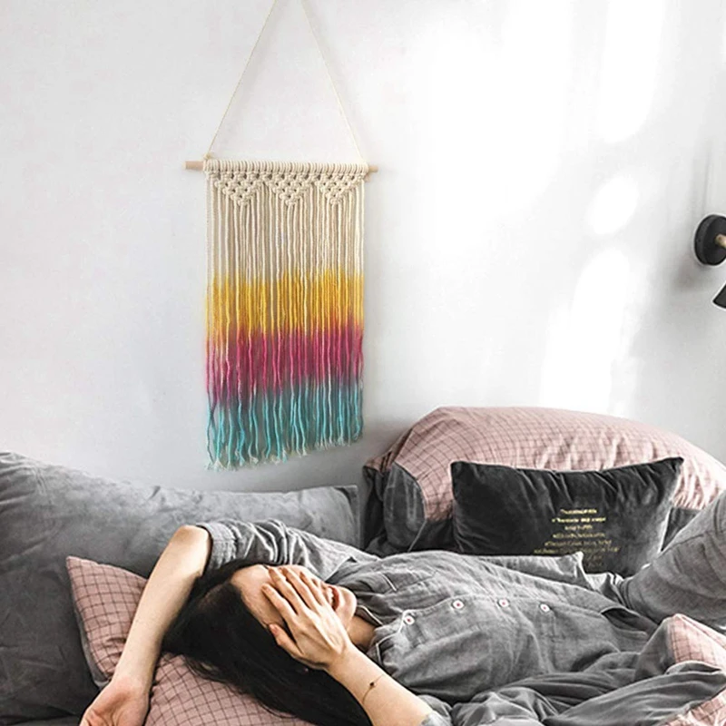 -Уникальный дизайн, Выполненный вручную, Настенный декор. Тканая настенная подвеска ручной работы с радугой позволит вам чувствовать себя расслабленным и наслаждаться комфортом и художественной жизнью.