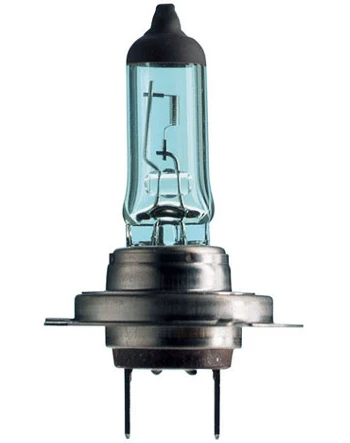 Синий колпачок на колбе придает излучаемому свету голубую окраску, делая автомобиль более привлекательным.