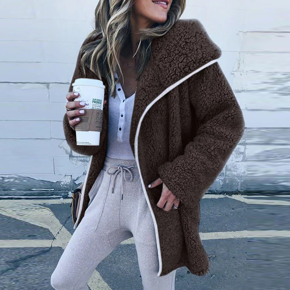 Женская осенне-зимняя однотонная куртка из искусственного флиса с длинным рукавом