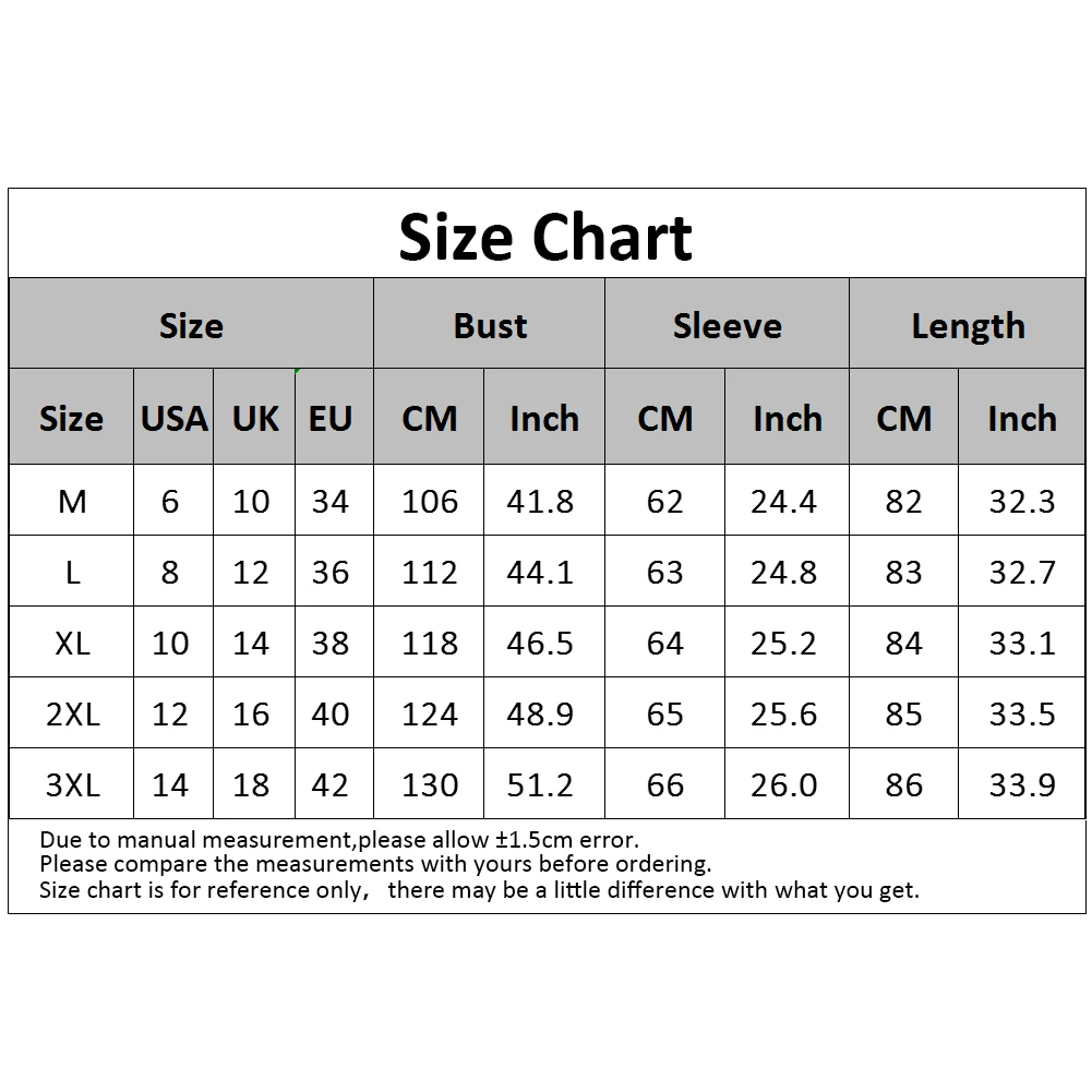 [Наш Размер 3XL] Обхват груди: 130 см/51,2 дюйма, рукав: 66 см/26 дюймов, длина: 86 см/33,9 дюйма (прибл.)