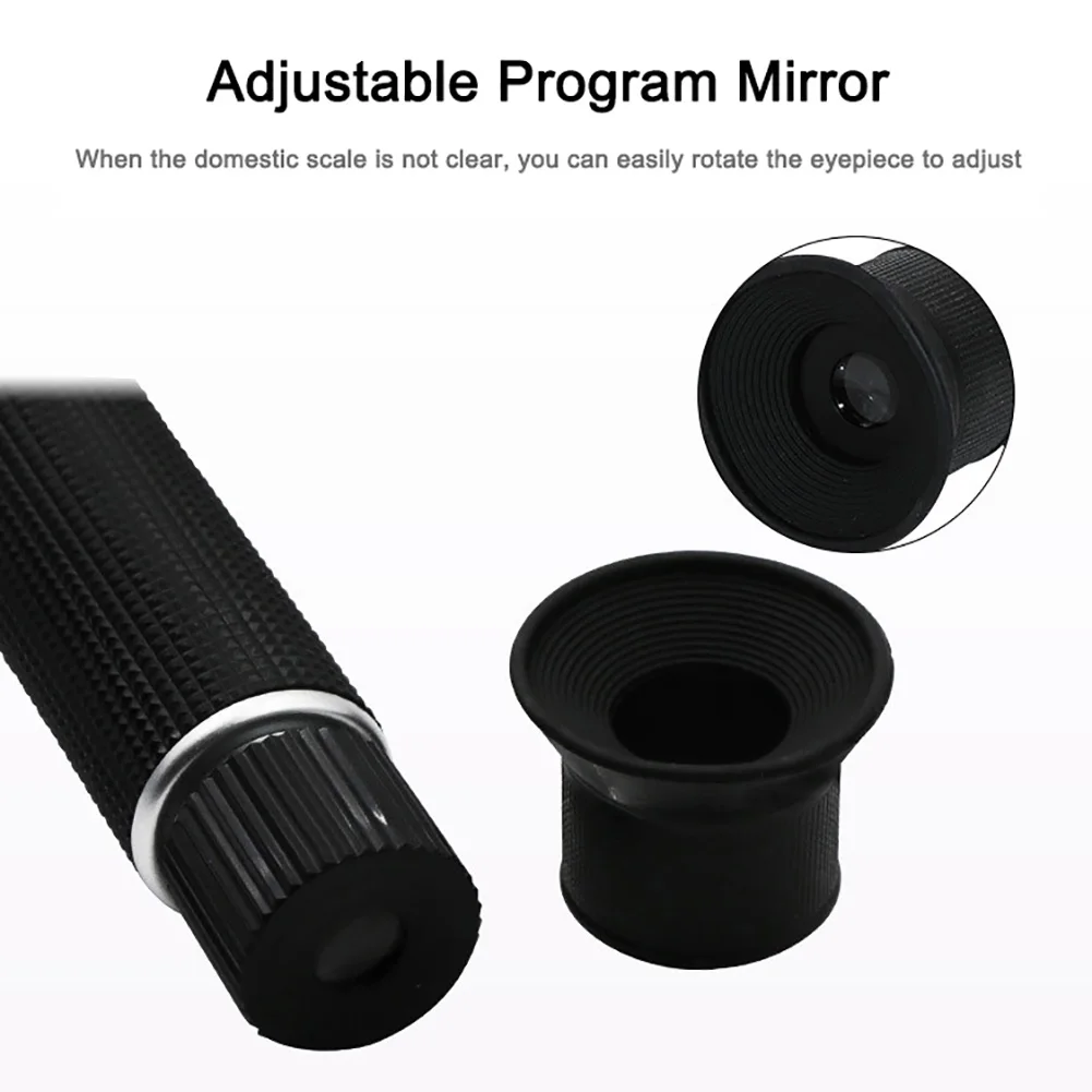 -Поместите несколько капель жидкости на оптическую часть рефрактометра, закройте призму, посмотрите через окуляр на светильник, И вы сможете прочитать значение результата в шкале.