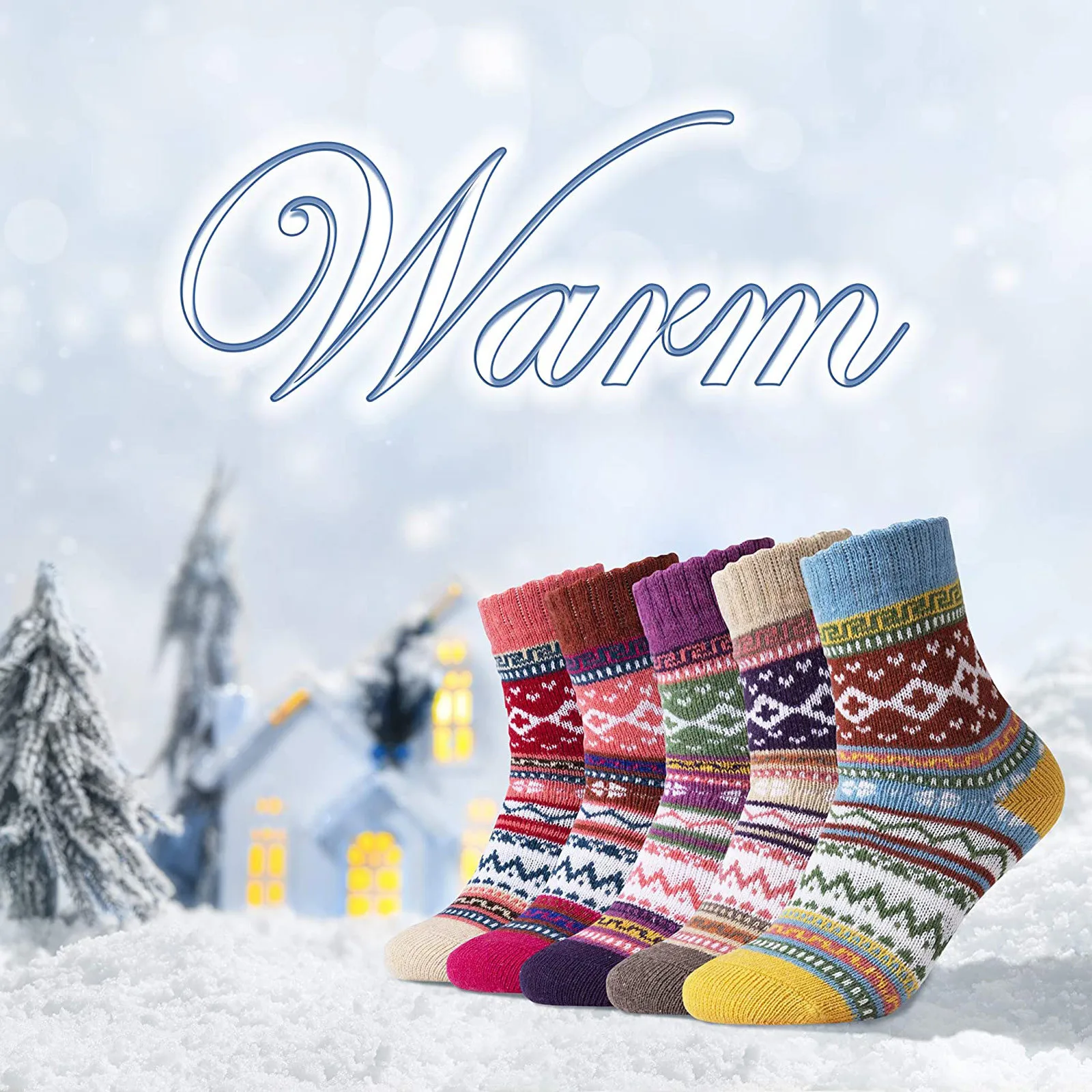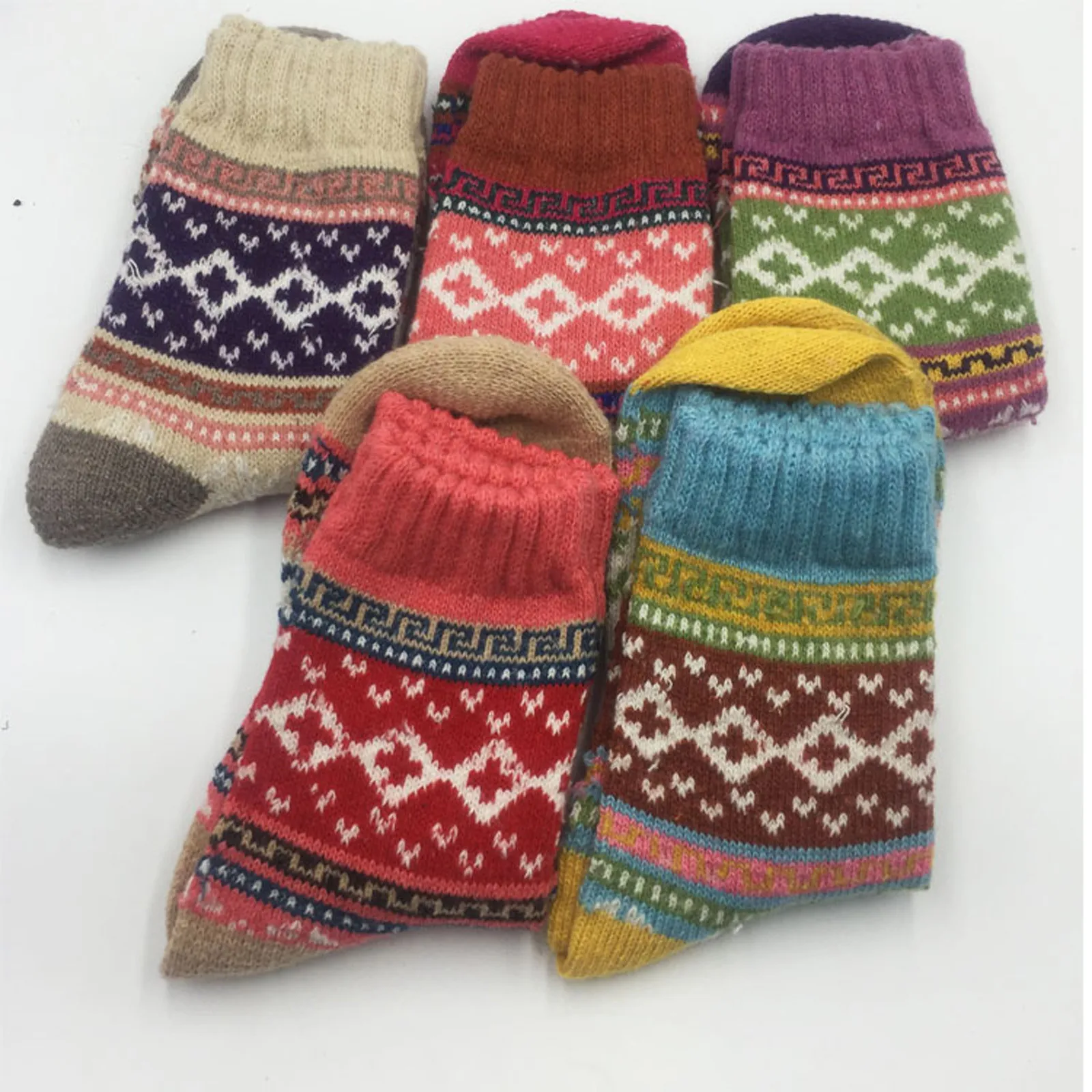 5 Pack Womens Socks Vintage Winter Soft Warm Cold Knit Wool Socks