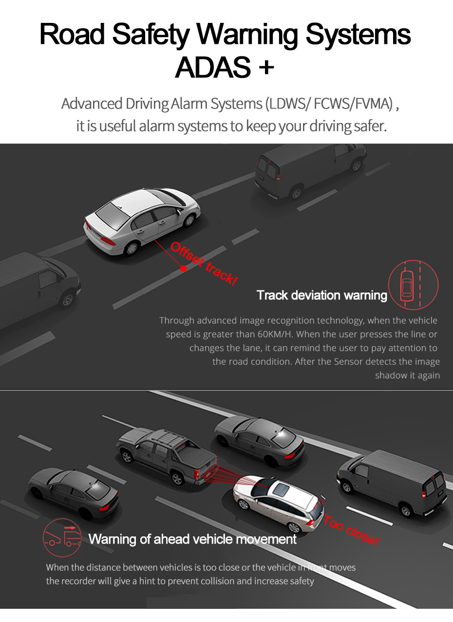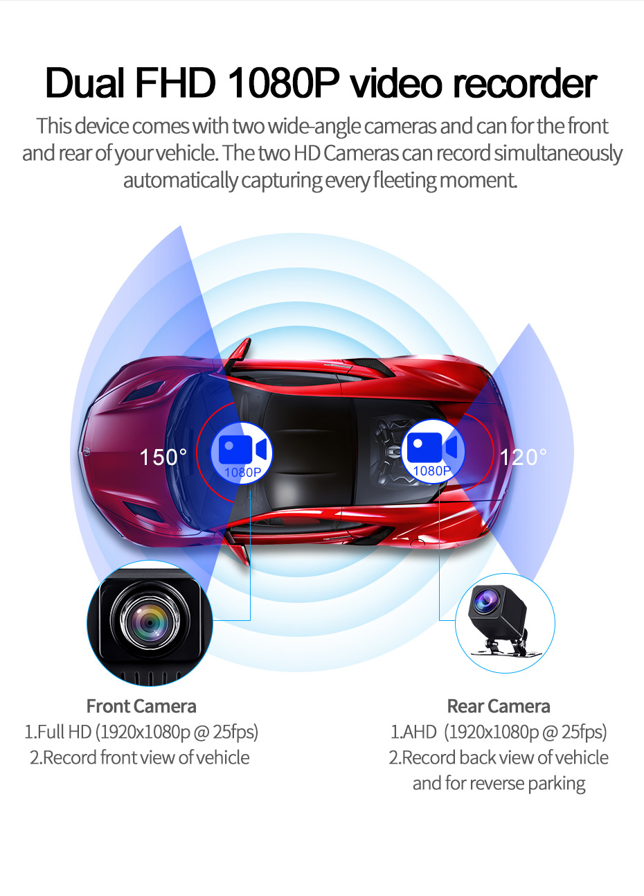 4. Фронтальная камера FHD 720p с задней камерой FHD 1080P, четкая запись видео и помощь в парковке.
