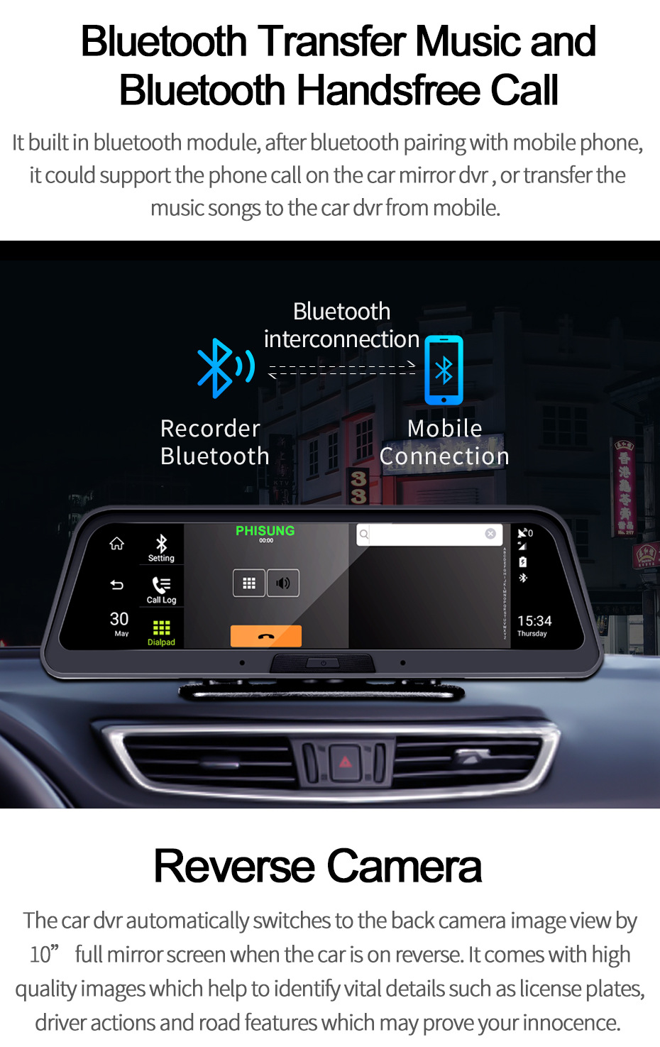 8. Bluetooth handsfree и передача файлов, вы можете передавать музыкальные файлы со смартфона на Автомобильный видеорегистратор После сопряжения bluetooth.