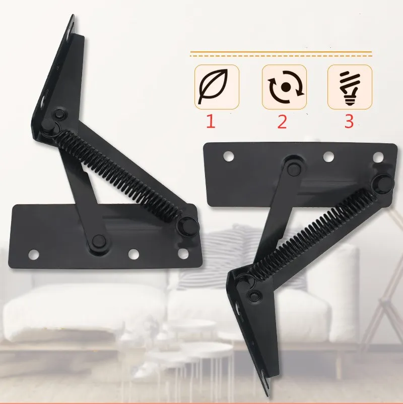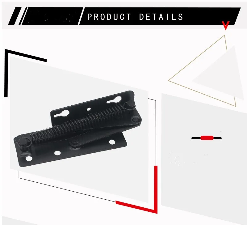 Product Name: plate spring hinge. Product color: black. Product material: cold rolled steel. Scope of application: supporting sofa headrest, storage box, storage box, etc. Product weight: 440G / set. Product size: as shown in the figure below
