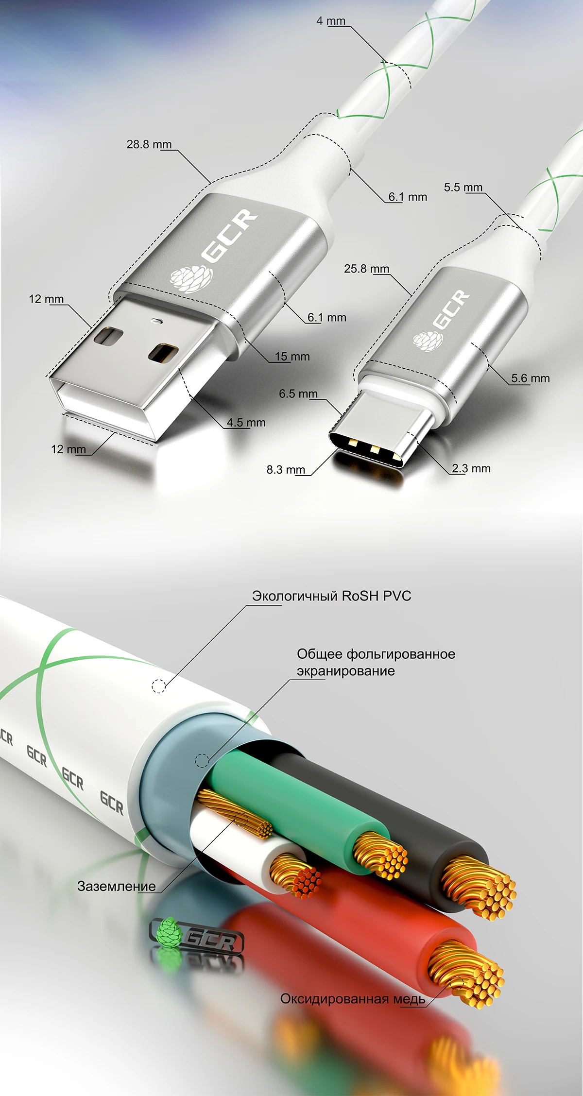 Кабель GCR Type C предназначен для подключения смартфона, планшета, камеры, видео-регистратора и навигатора к компьютеру или для зарядки от адаптера питания с разъемом Type-C.
