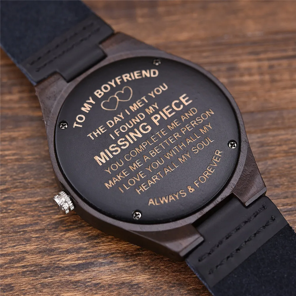 Вы можете персонализировать ваши часы с именем или фразу по вашему выбору. Задняя часть этих часов выгравирована, чтобы сделать это действительно уникальным и личным подарком, который будет цениться годами.