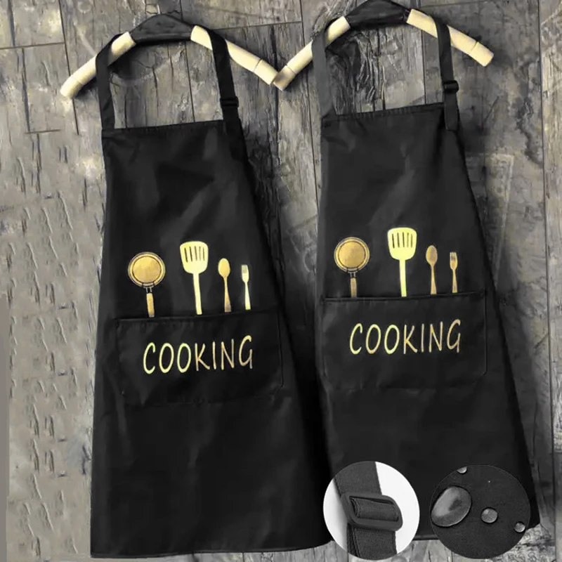 Водонепроницаемый Фартук с большим карманом. Он может держать кухонную утварь, мобильный телефон и другие мелкие вещи. Это облегчает приготовление пищи.