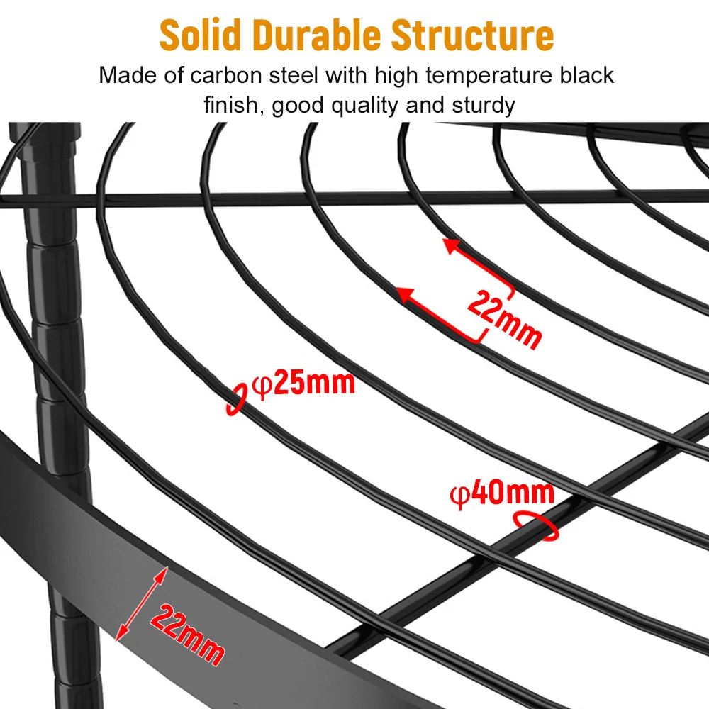Прочная конструкция и большая грузоподъемность: Изготовлен из углеродистой стали с высокой температурой черного цвета, хорошее качество и прочность, полка может держать тяжелые предметы, такие как цветочный горшок, чугунный горшок и т. д.