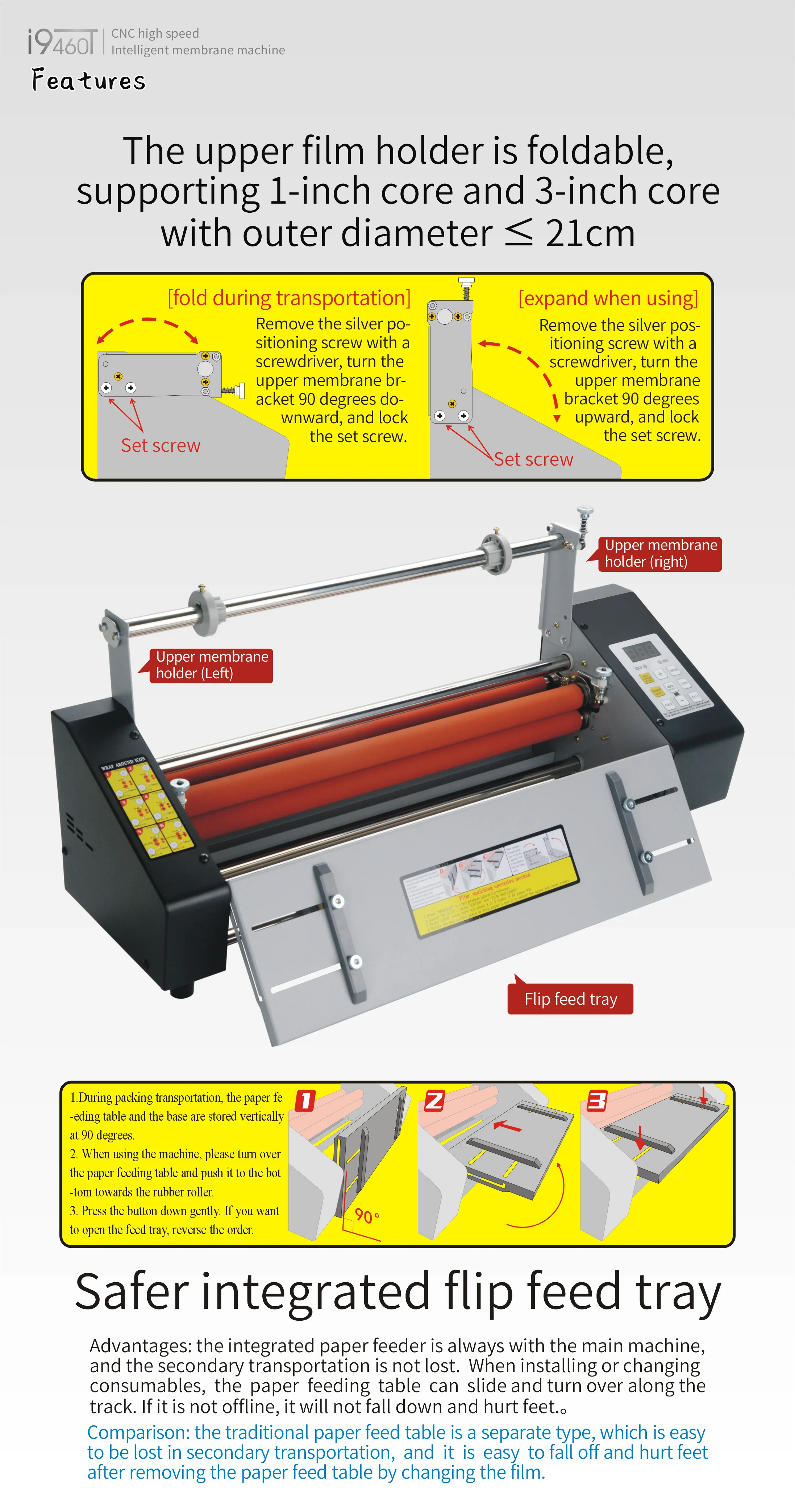 Ширина покрытия пленки: A2 +/44 см Толщина картона: 0,1-5 мм Скорость мульчирования пленки: 0,3-3 м/мин Источник питания: 110 В/220 В Температура: 0 °C-180 °C Основной вес: ≤ 7,70 кг Регулировка скорости: Да Размер машины: 63,2*22,3*30,8 см Транспортные Размеры: 74*30*27 см