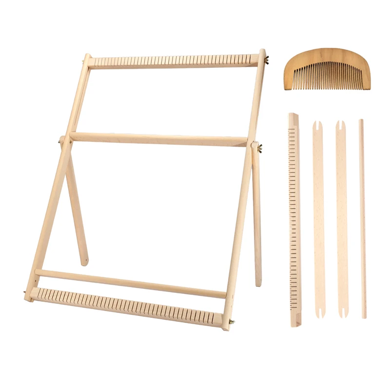 Тонкое мастерство --- паз гладкий и плоский, избегая повреждения оппонента, безопасен и уменьшает истирание шерсти во время плетения. Твердый Буковый станок с очень прочными зубьями луча! Прочная рама с регулируемой подставкой!