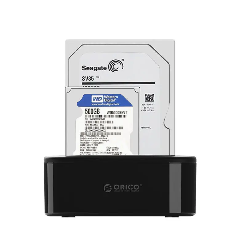 Док-станция ORICO Dual-bay для жесткого диска: Эта док-станция совместима с 2,5-дюймовым или 3,5-дюймовым HDD/SSD до 8 ТБ на отсек, обеспечивает более удобный способ передачи данных между жестким диском и компьютером через доступный usb-порт.