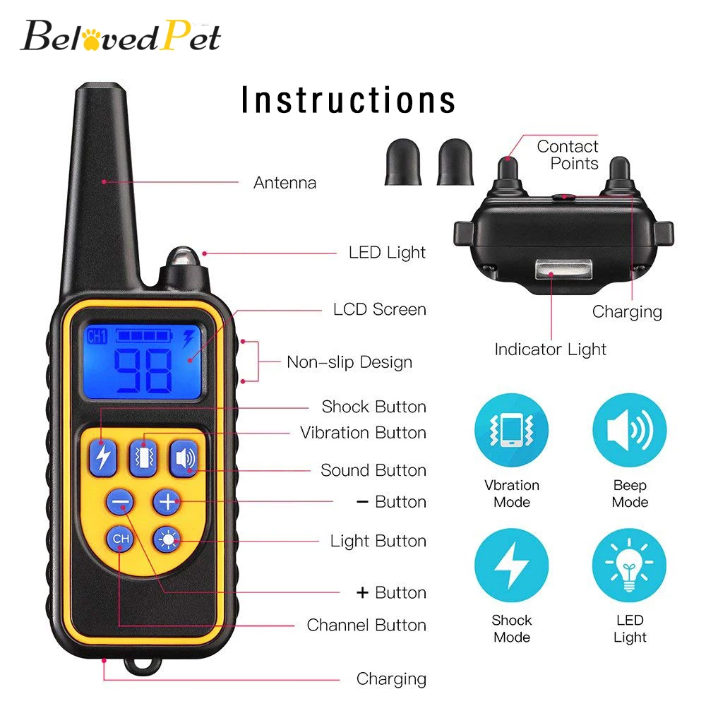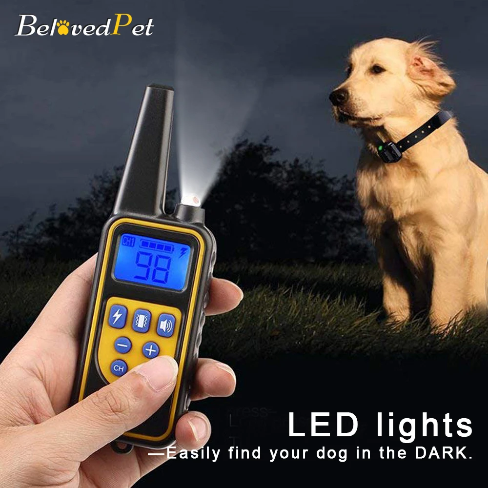 Оригинальный 800 м ошейник для собак с пультом дистанционного управления водонепроницаемый перезаряжаемый с ЖК-дисплеем для ошейников всех размеров