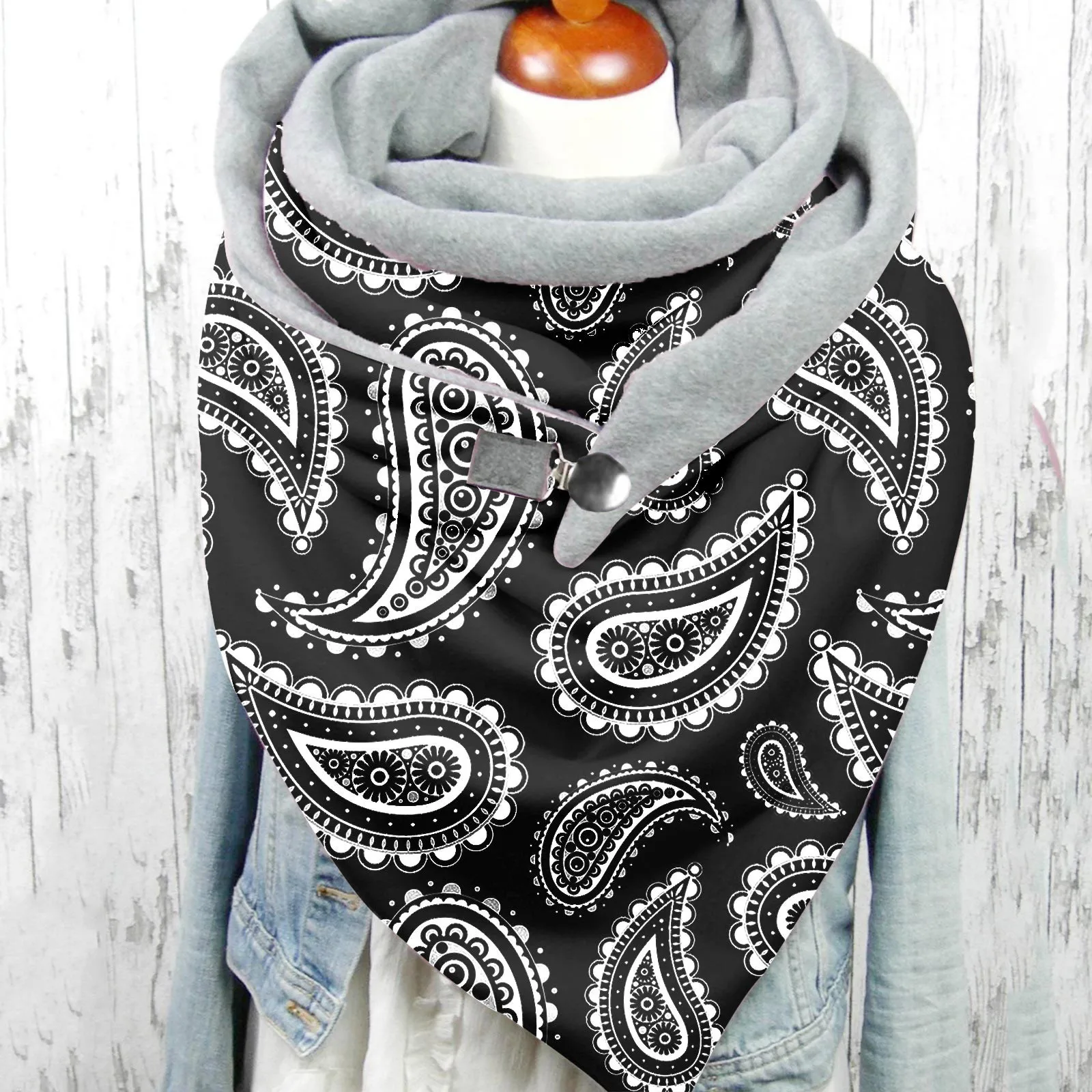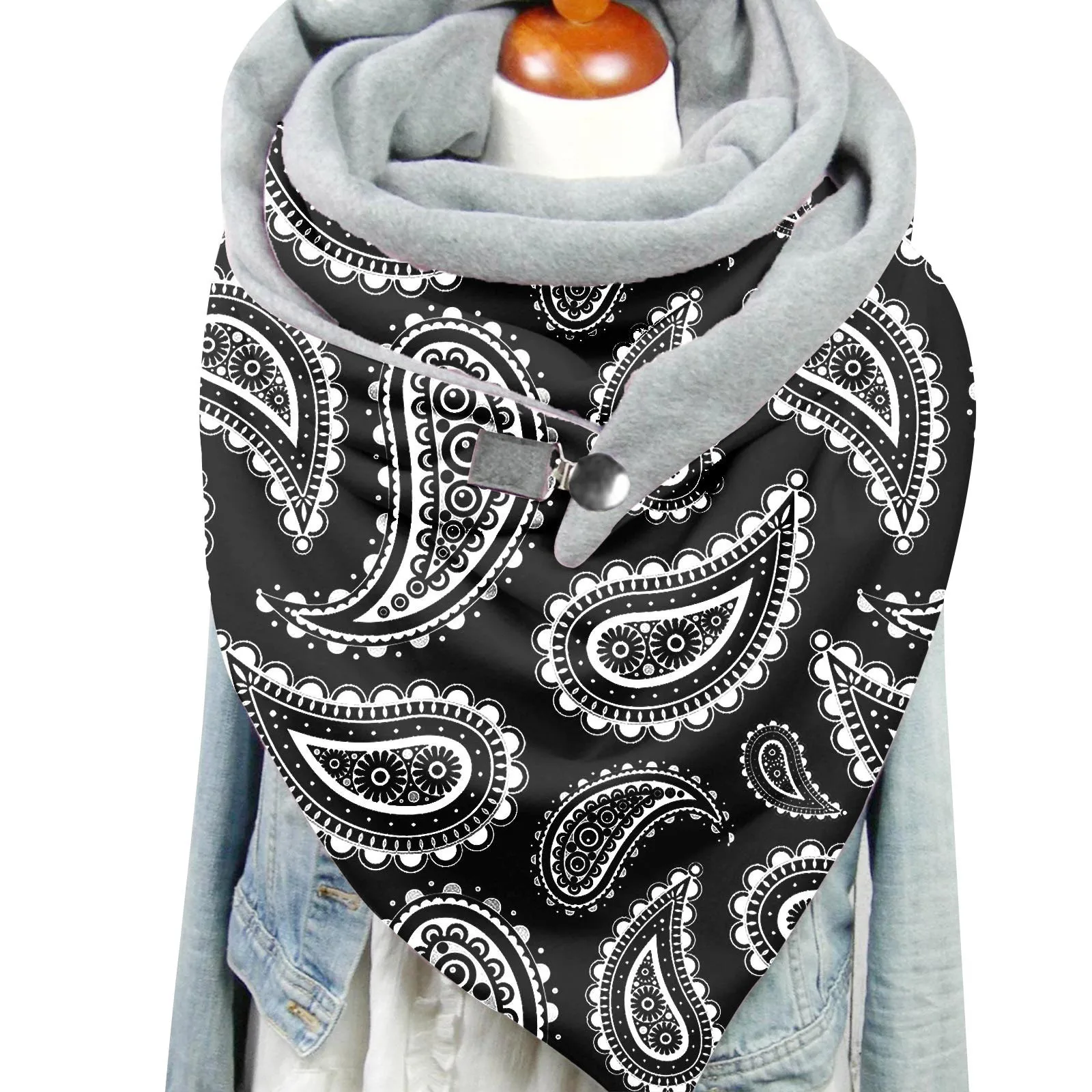 Модная зимняя женская мягкая накидка на пуговицах с принтом Повседневные теплые шарфы; Шали; Нагрудник