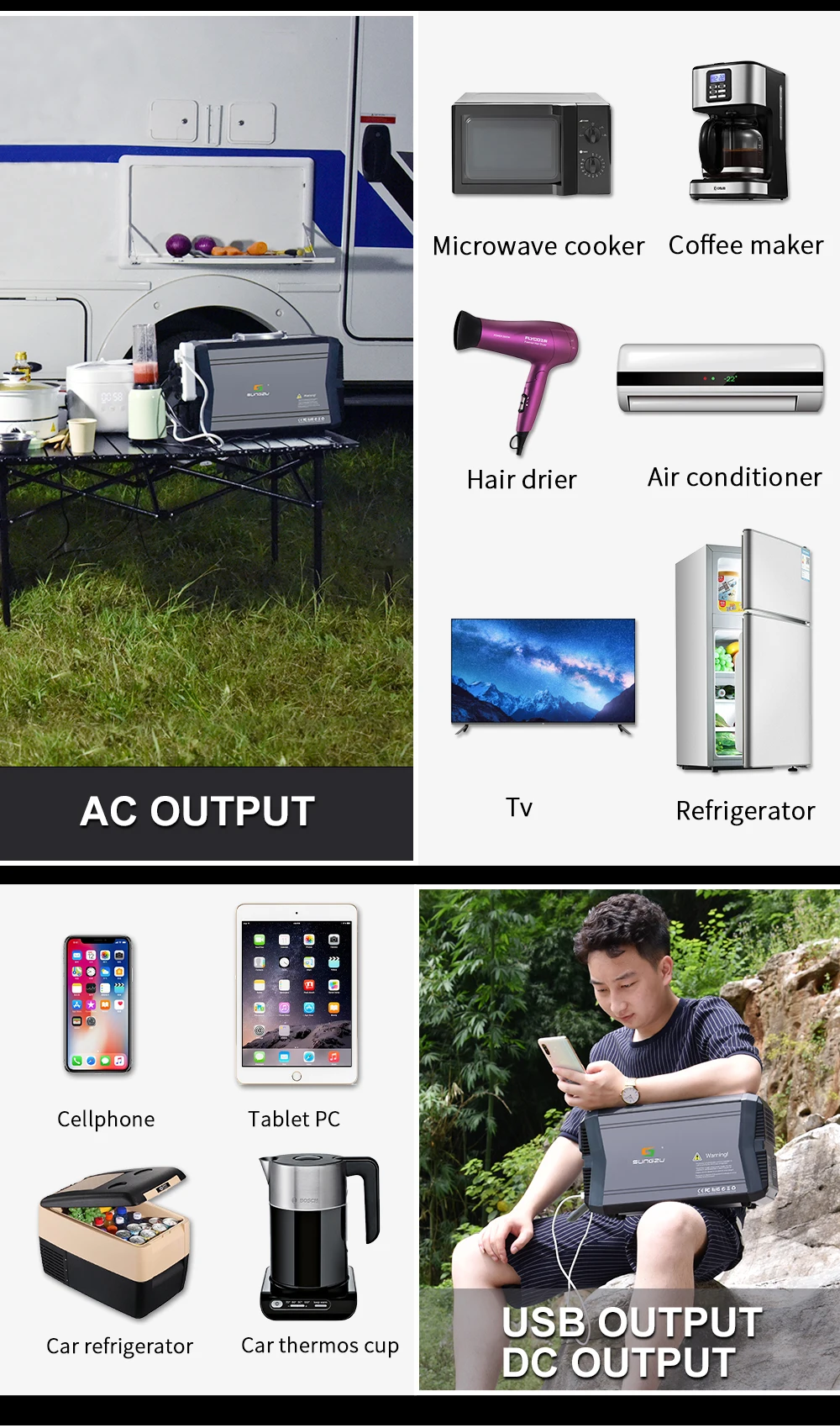 6. Выходной ток: USB: 5 В/3 А (4 порта) 12 В/10 А (2 порта)