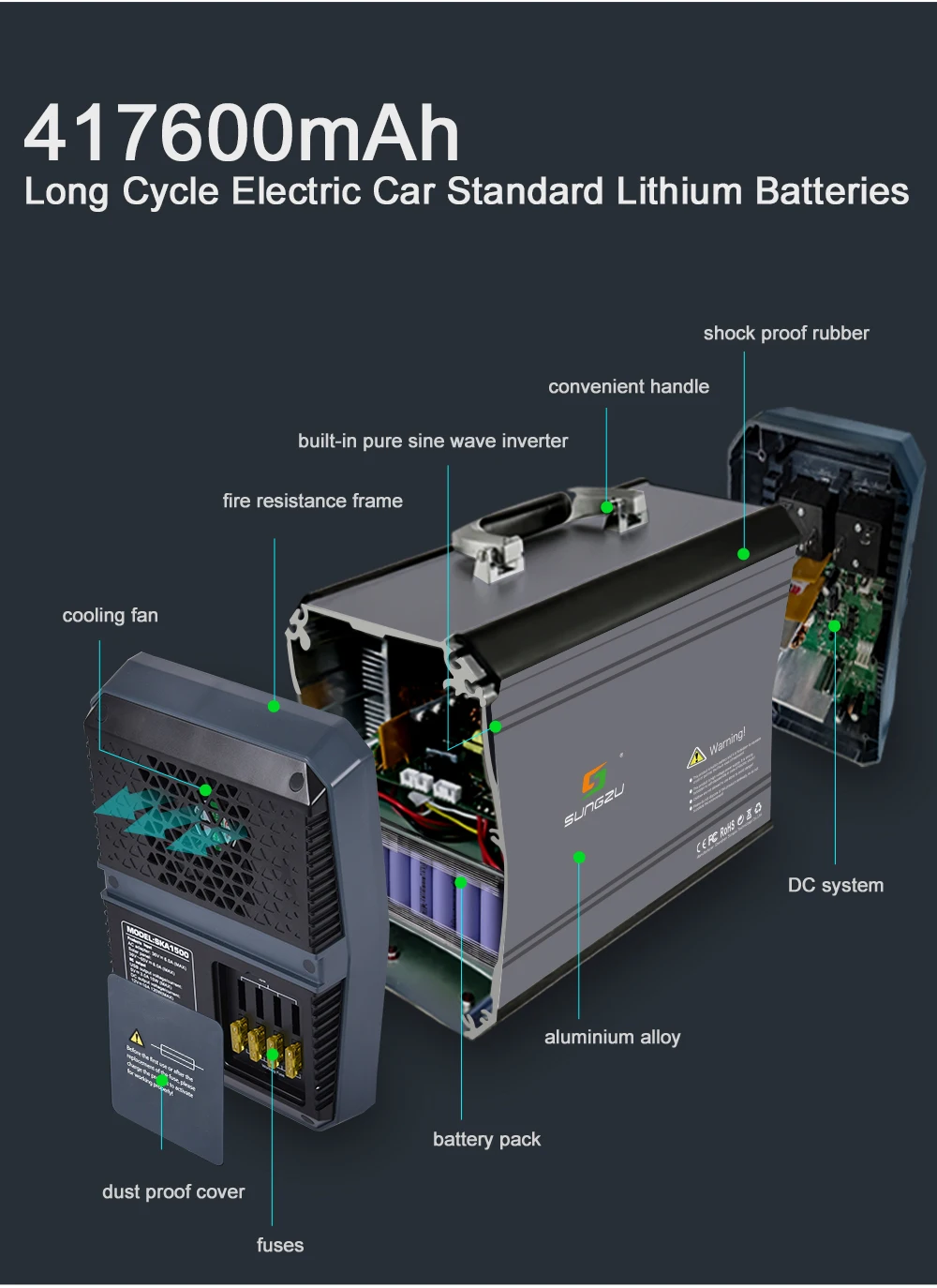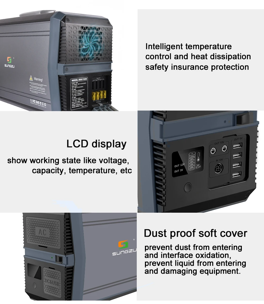 10. Особенности: контроль температуры батареи; Зарядка и разрядка в то же время; С солнечной технологией MPPT для полного использования солнечного света; Со страховой трубкой, чтобы гарантировать безопасность транспортировки