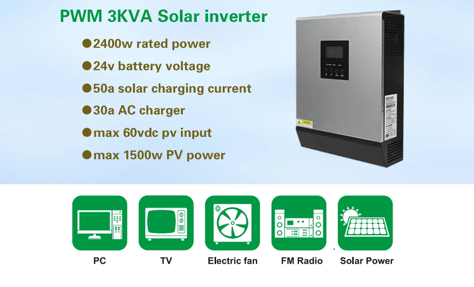 3000VA 24VDC 220VAC 110VAC чистая Синусоидальная волна Гибридный решетки солнечный инвертор построить в 50A ШИМ солнечное зарядное устройство контроллер