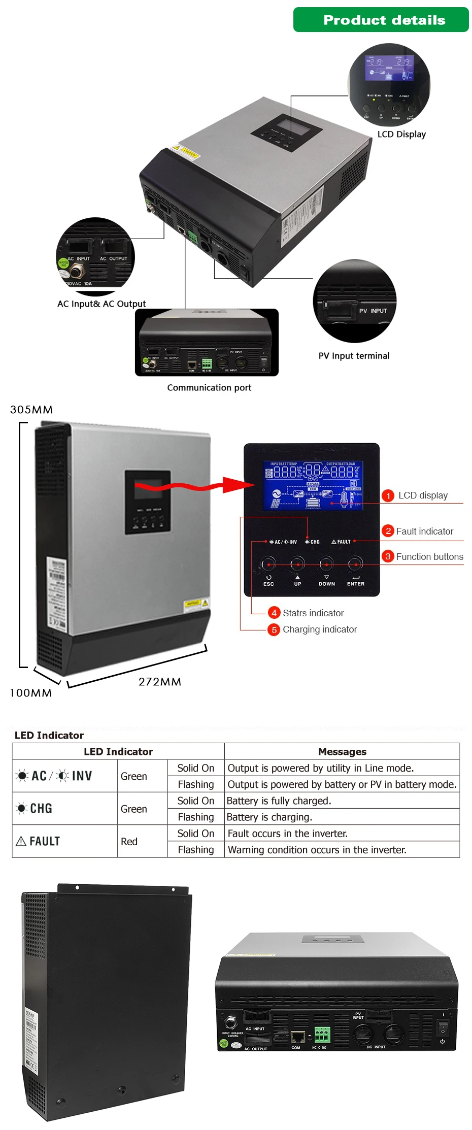▶Настраиваемый AC/Solar вход приоритет через ЖК-настройки