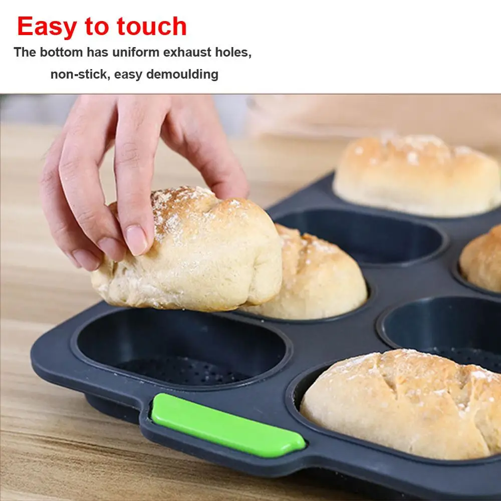 1. Мини французская сковорода для хлеба, изготовленная из пищевого силиконового материала, безопасная в использовании, хорошая эластичность, не легко деформируется и долговечна.