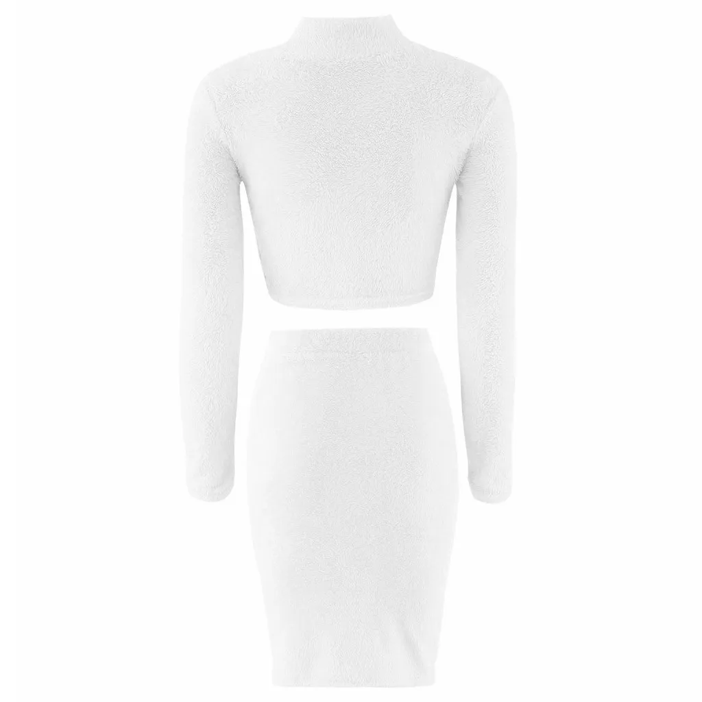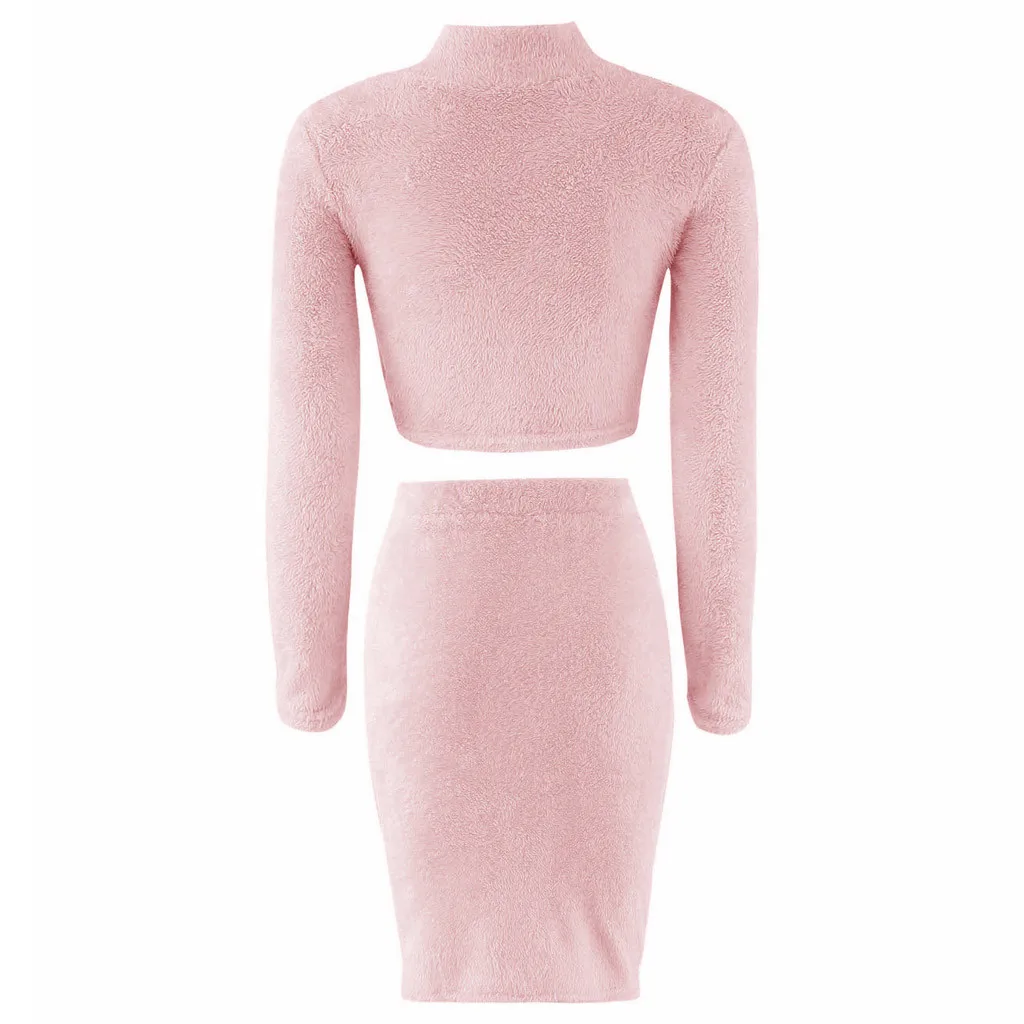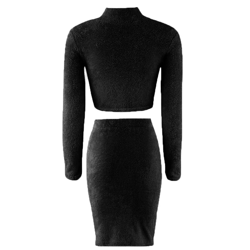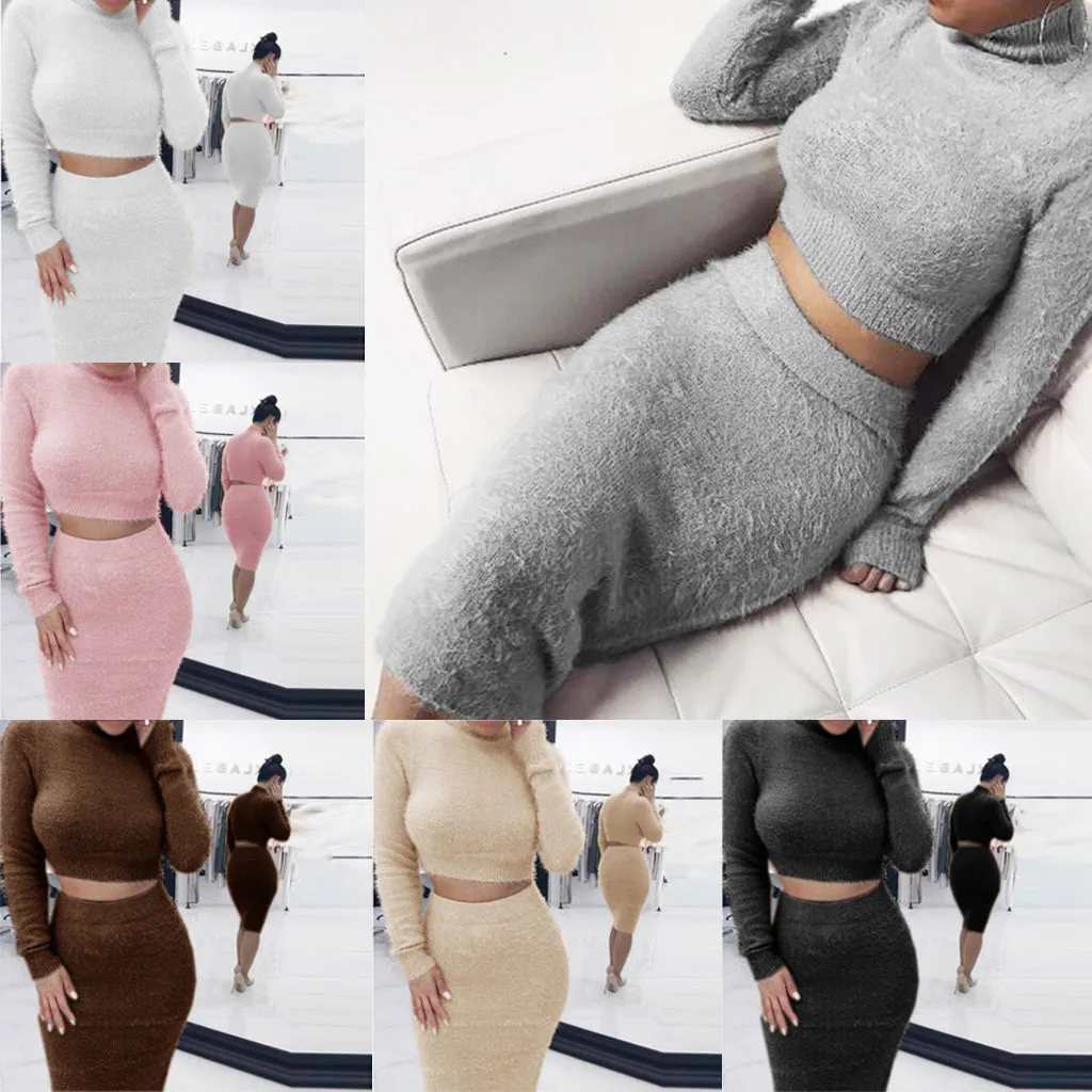 Женский комплект юбки и свитера, зимний укороченный Топ с длинным рукавом + юбка-карандаш, вязаный костюм