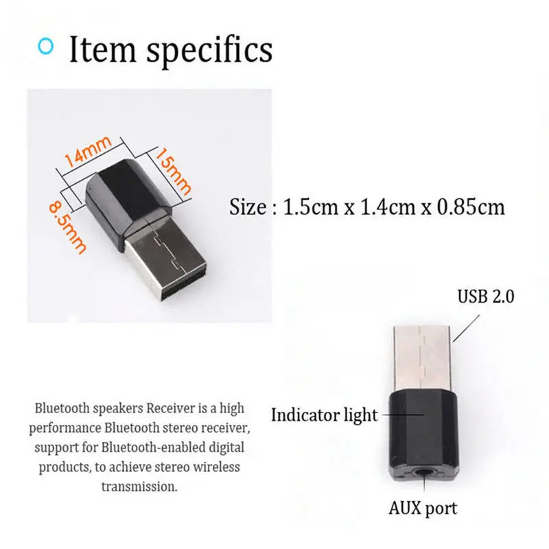 DC5V источник питания, подключение AUX / RCA аудио линии для работы, он не будет работать, если вы вставляете колонки с одним USB;