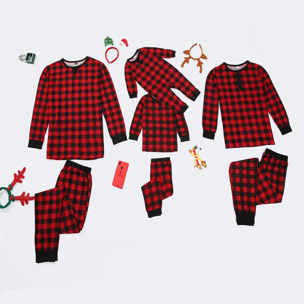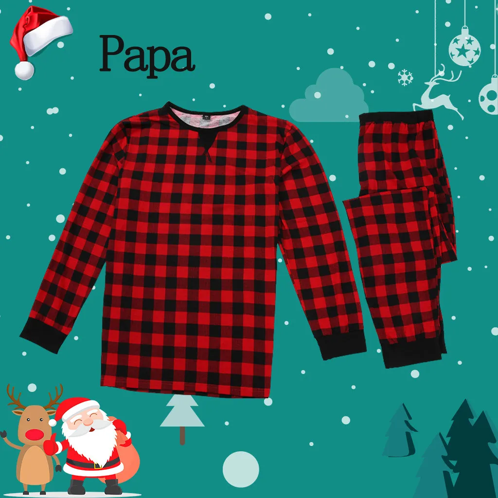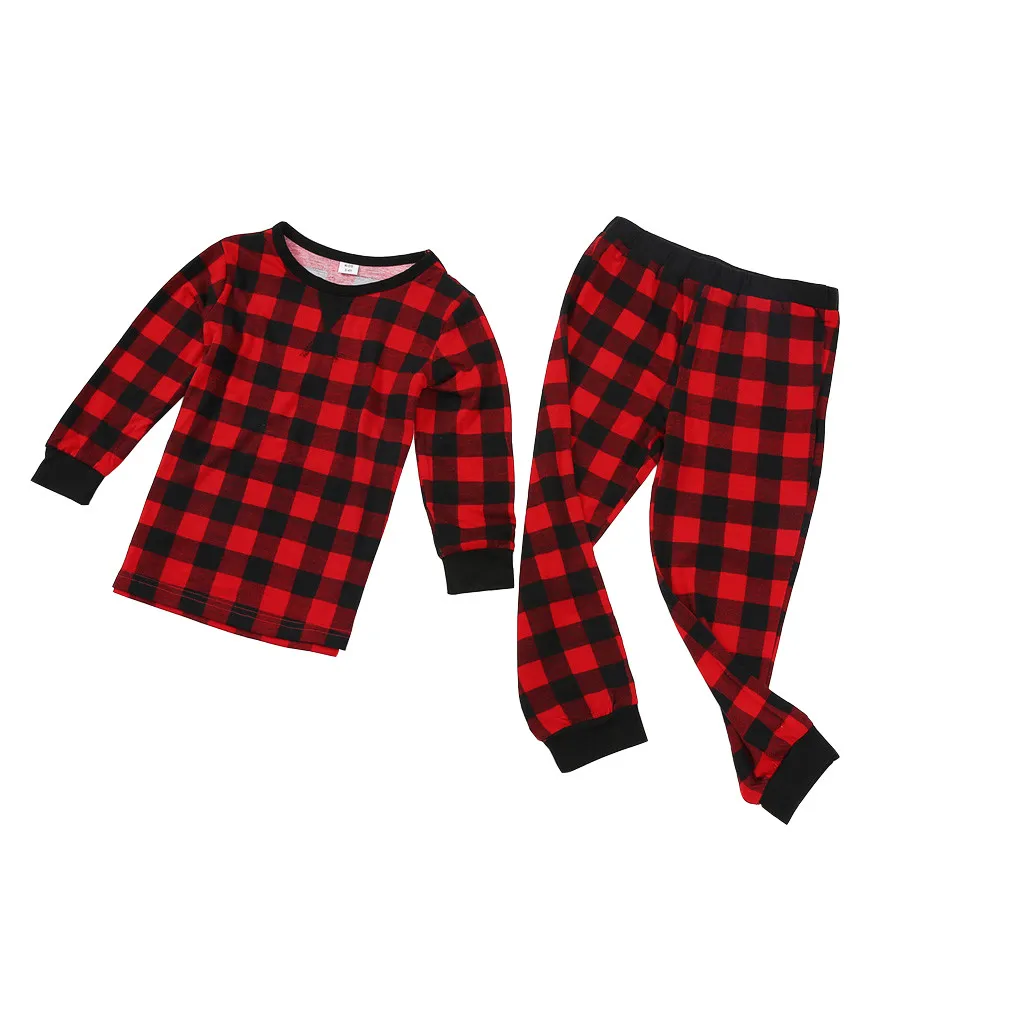Теплая Рождественская домашняя одежда для отдыха с принтом в клетку для родителей и детей; Пижамы для малышей