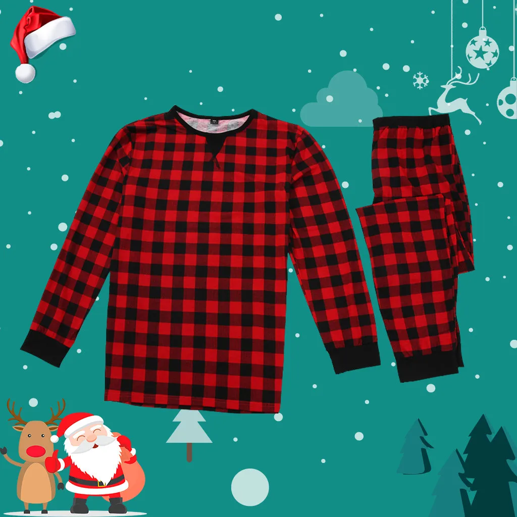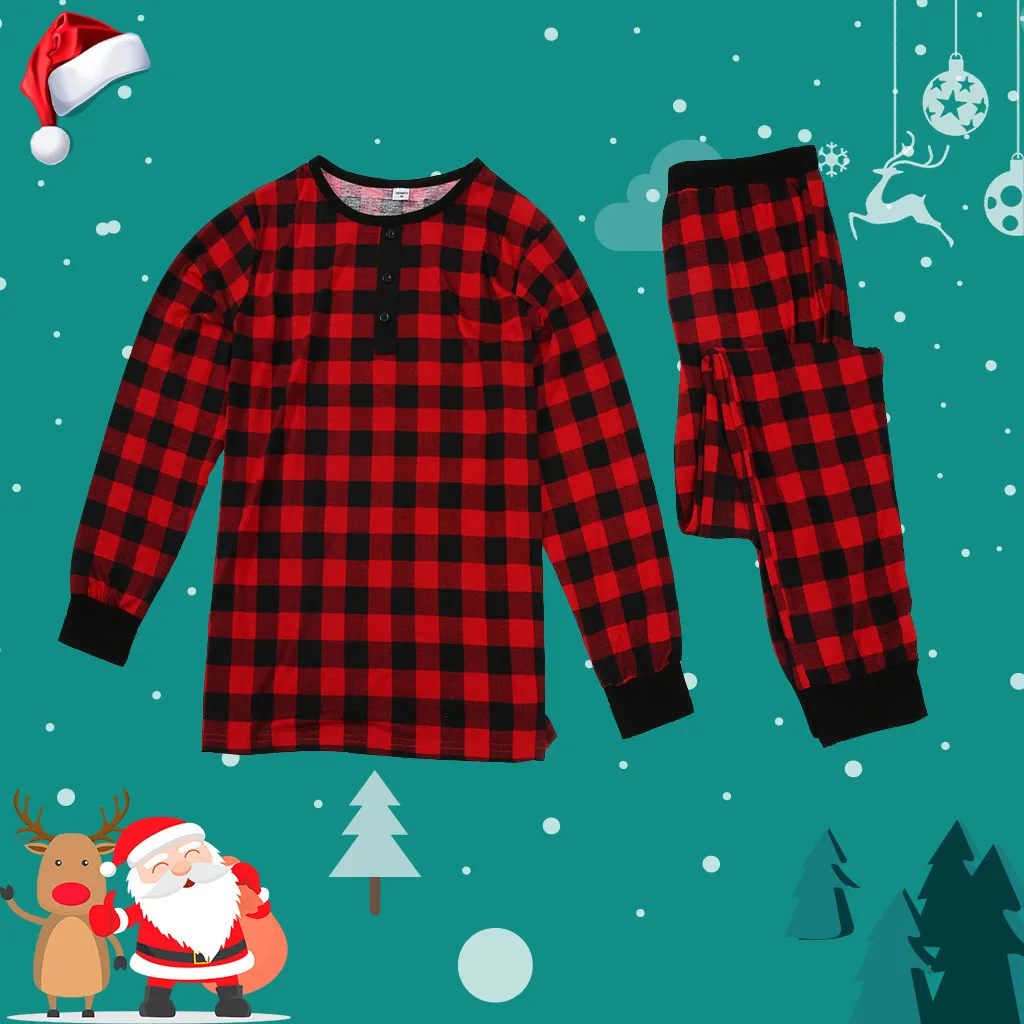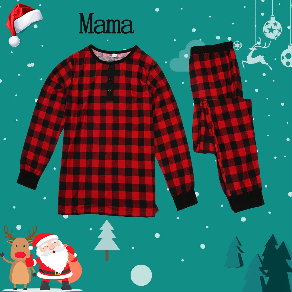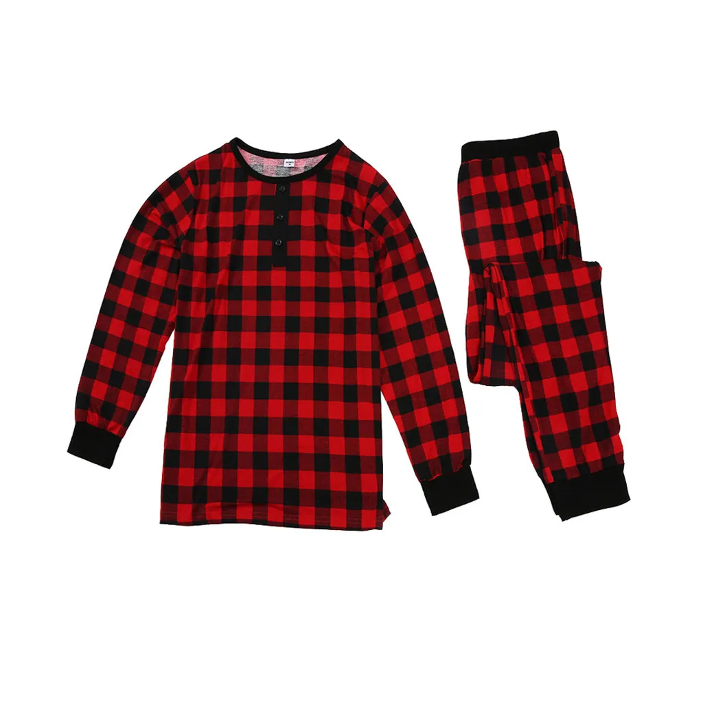 Теплая Рождественская домашняя одежда для отдыха с принтом в клетку для родителей и детей; Пижамы для малышей