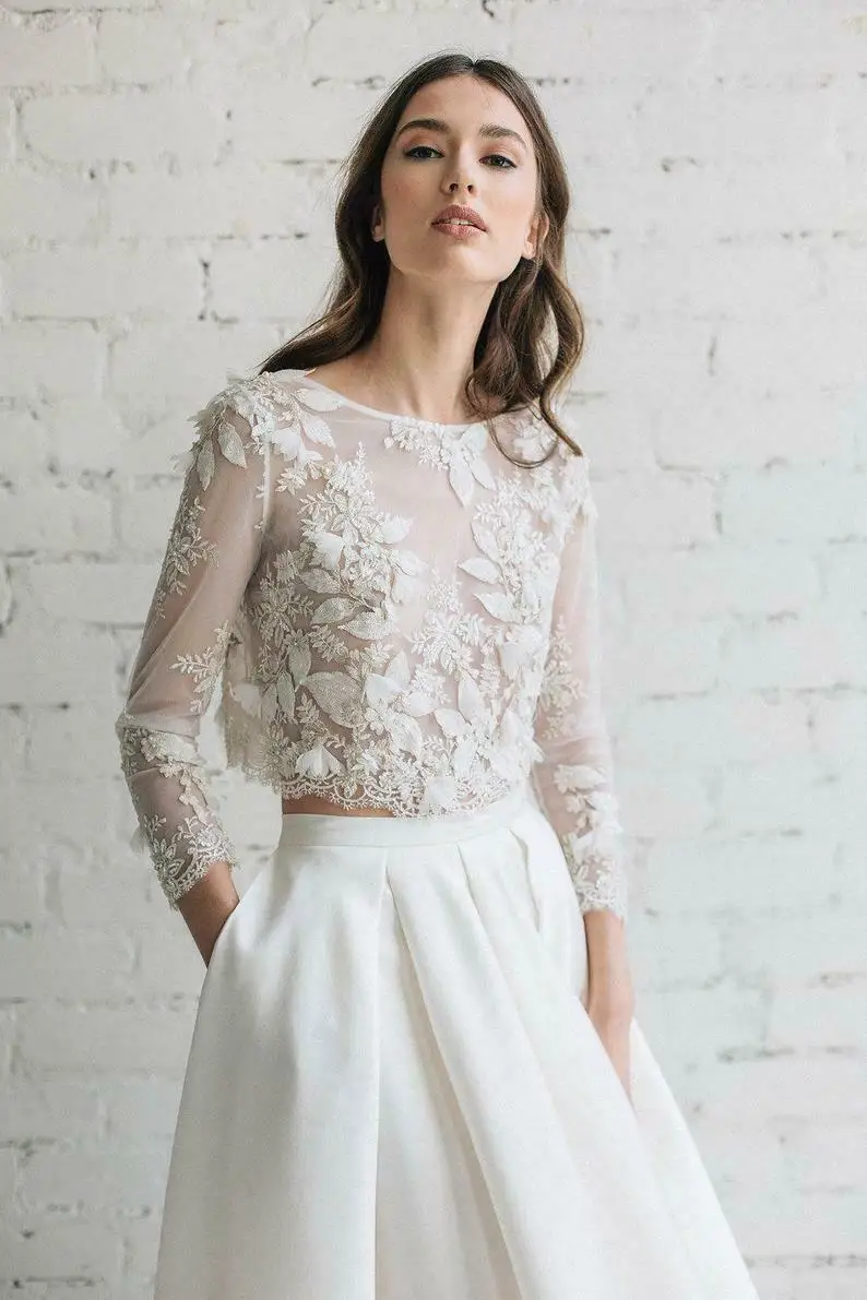 Свадебная куртка жемчужная шаль Белая слоновая кость 3/4 рукава Аппликация по индивидуальному заказу