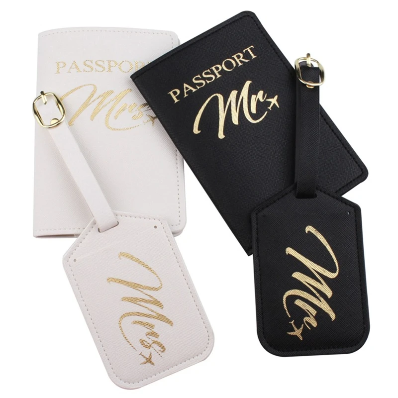 It includes 1 passport cover and 1 luggage tags. Cute set for passports are perfect for couples traveling after their wedding with appropriately stylish designs for him and her couples.