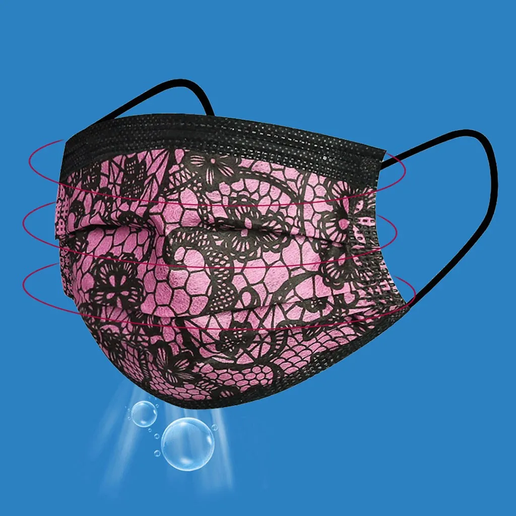 3 слоя Нетканая одноразовая маска изготовлена из 3 слоев из нетканого материала с кружевного материала, он безопасен для здоровья и безопасный для вас, чтобы использовать. Дышащий материал и милые узоры, что делает его полезным и модным. Специальный 3 слоя из нетканого материала, дизайн, обеспечивает некоторые меры защиты от пыли, автомобильный отходящий газ, пыльцу и т. Д. Эластичная петля уха позволяет легко снимать и надевать цепочку и не давит на уши. Маникюрный салон или любые другие области, где может потребоваться защита, кружево маски не позиционируется, и узор будет немного отличаться
