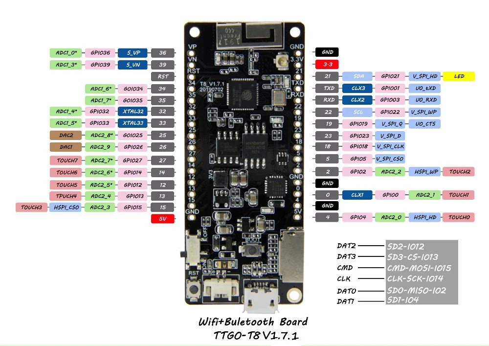 1. Последняя версия ESP32. Поддержка REV1, беспроводного Интернета и Bluetooth.
