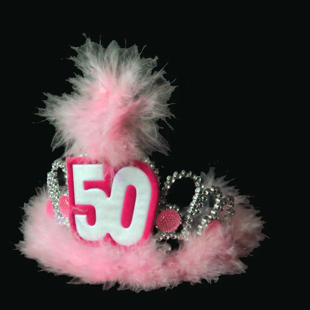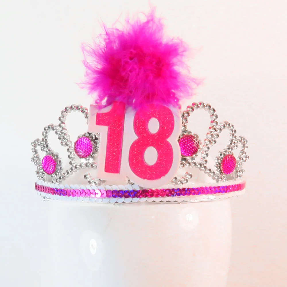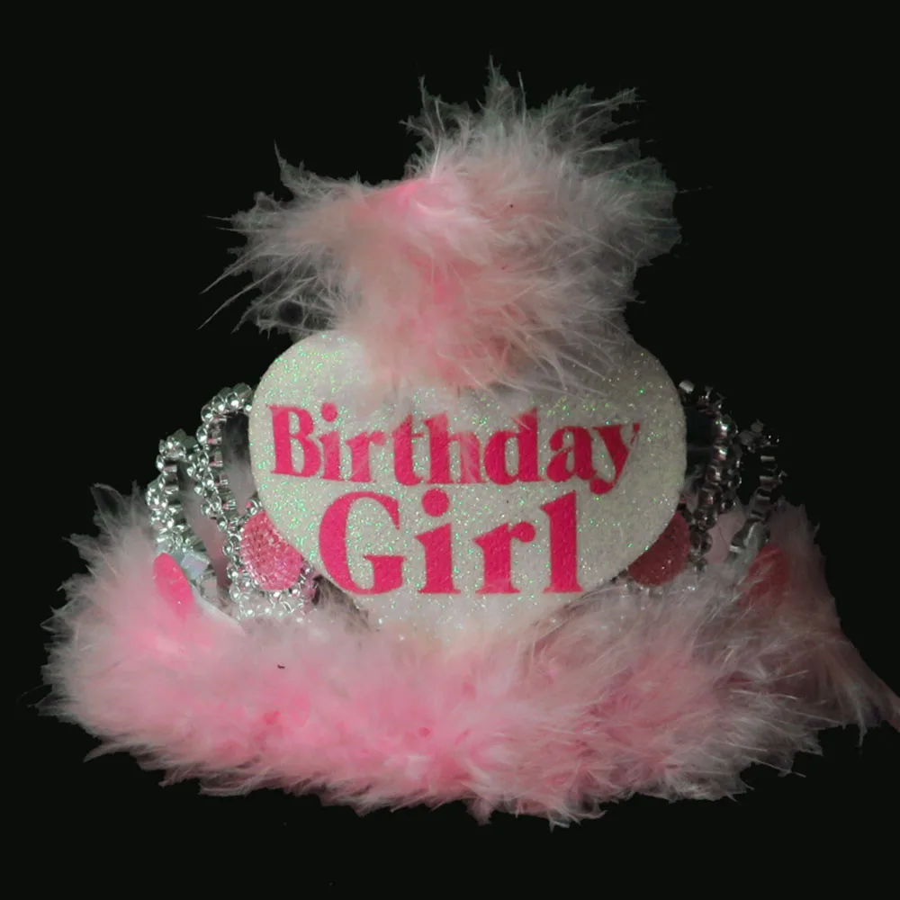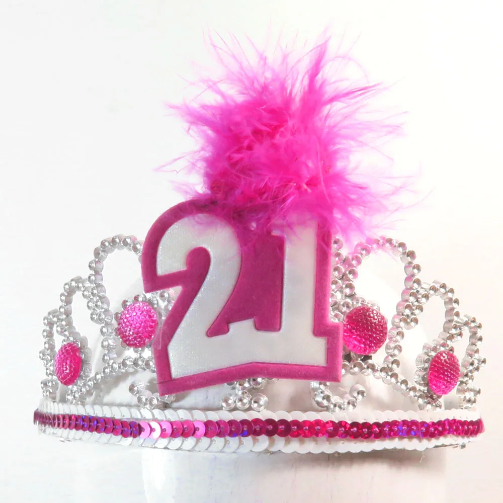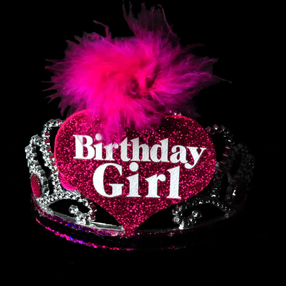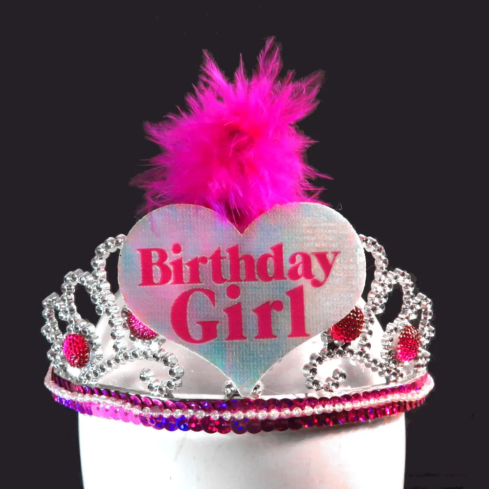 BP1909201506 серебряная тиара ярко-розовый камень ярко-Розовое Перо Белый С Днем Рождения черная основа розовая поверхность отделка блесток: