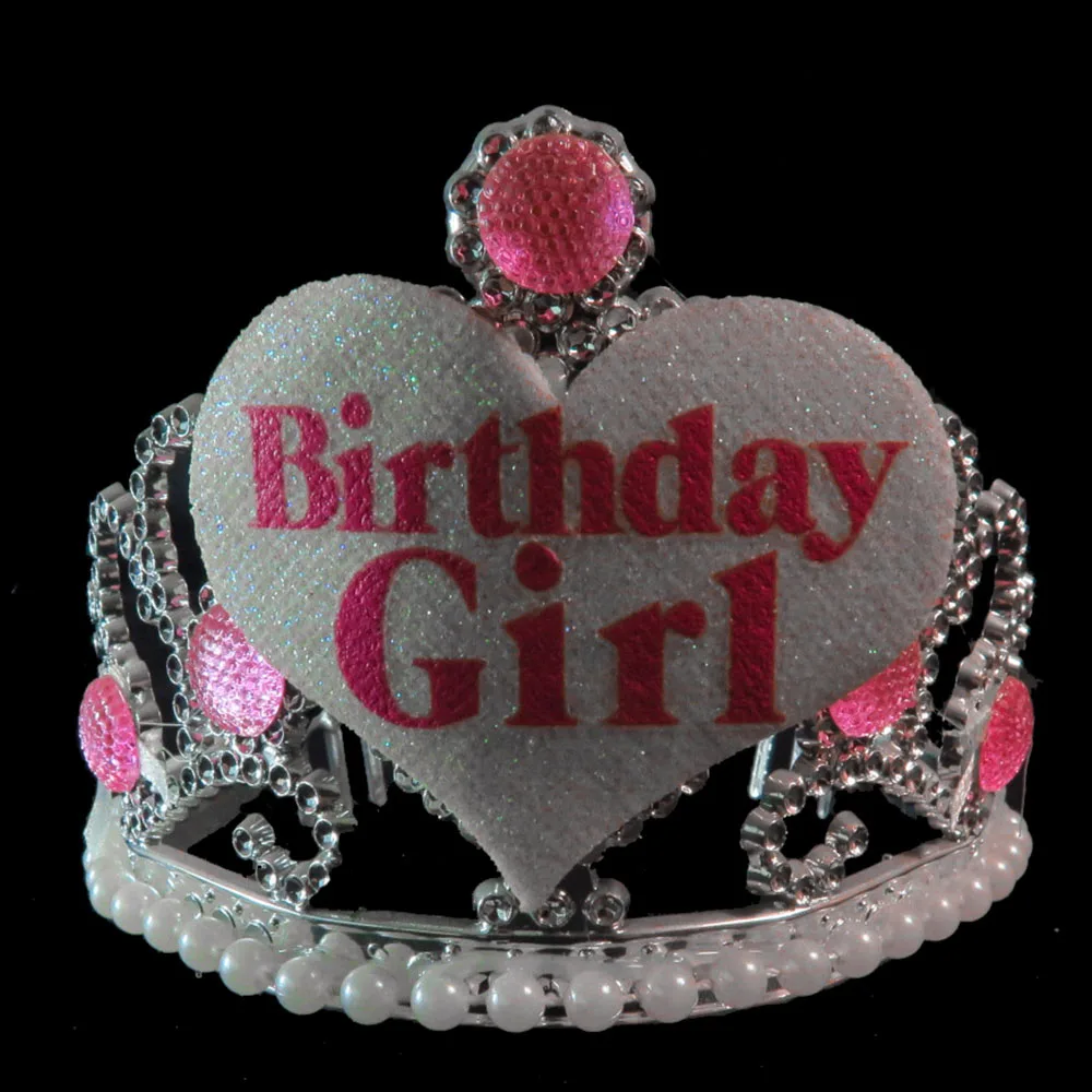 BP1909201505 Серебряный Тиара светильник розовый камень светильник Розовый перо розовый день рождения девушка белое сердце Основание: