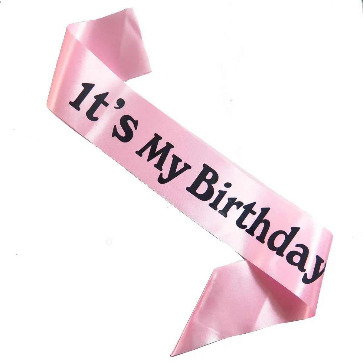 B18081913-3, горячая розовая сатиновая лента, черная, моя лента для дня рождения: