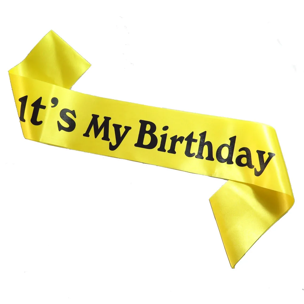 B18081913-4 Желтая атласная лента Черная это мой день рождения печать: