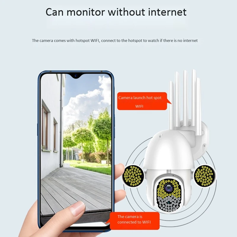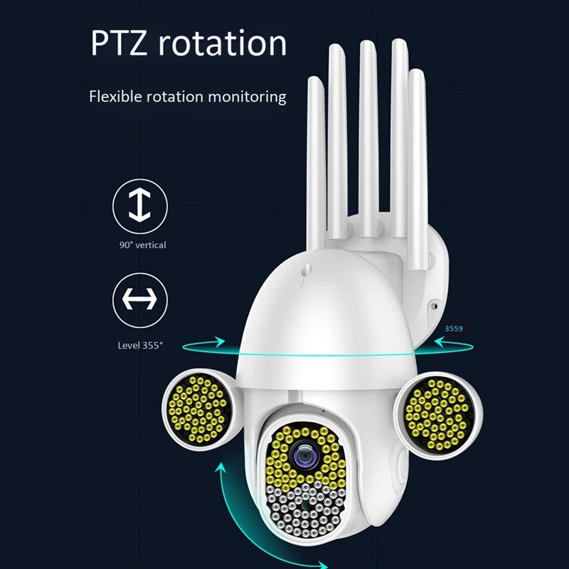2. Дневное и ночное полноцветное освещение, пиксели высокой четкости, защита от дождя, защита от солнца, голосовая связь, поворот панорамирования и обнаружение движения, хранение tf-карт и Облачное хранилище