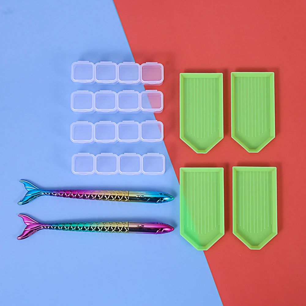 1 комплект: 1x держатель лотка + 2x ручка русалки + 4xGreen лоток + 16xDrill коробка для хранения + 10x глина