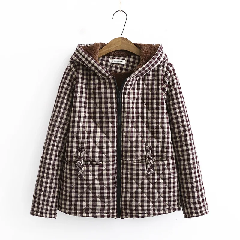 Женская парка больших размеров, зимняя теплая, новинка 2020, короткая стеганая куртка в клетку, свободное флисовое пальто с подкладкой