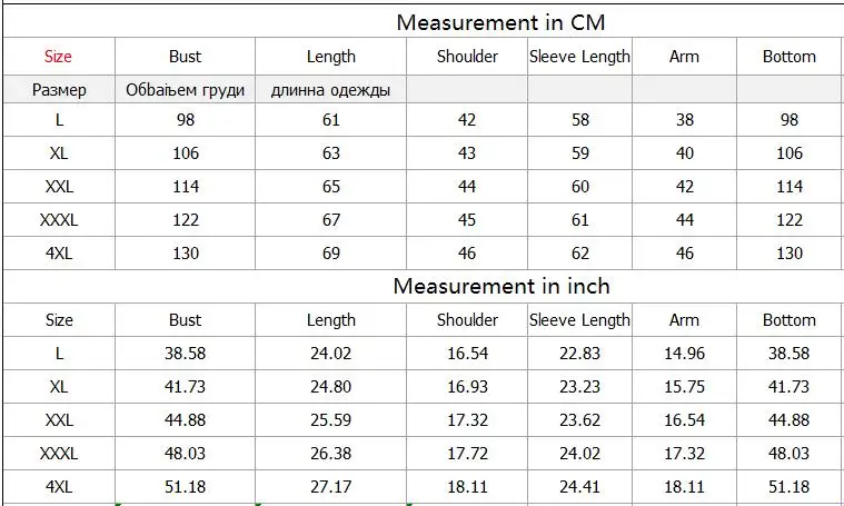 В таблице указаны внешние параметры куртки. размер определяется следующим образом: