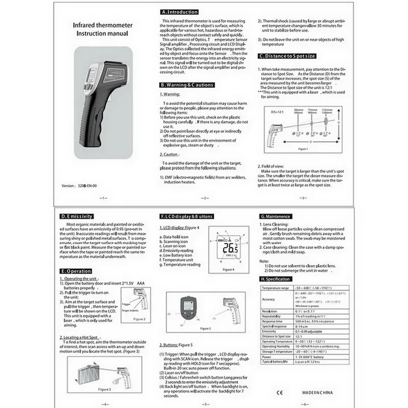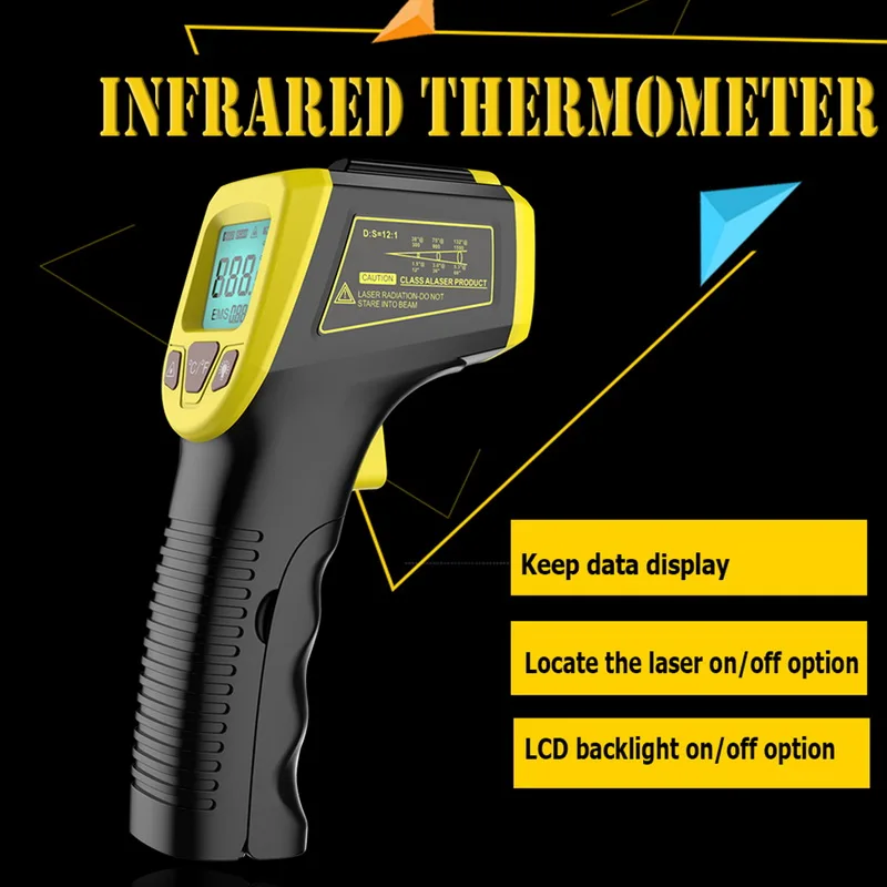 <Бесконтактный: нет прямого контакта с объектами, которые находятся в опасной горячей или холодной воде. Вы просто наведете термометр на нужную поверхность, нажимаете на триггер и мгновенно получаете показания температуры, это так удобно и безопасно.