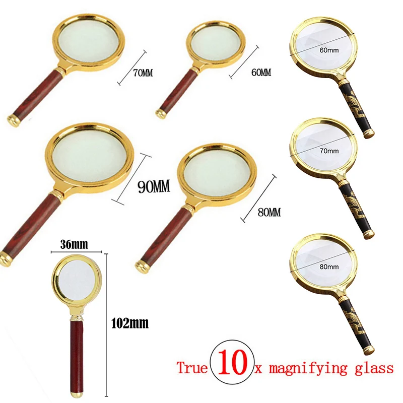 Портативный ручной 10X увеличительное стекло 60 мм 70 мм 80 мм 90 мм ручка в стиле ретро лупа для глаз Лупа Стекло для ювелирных изделий газетная книга